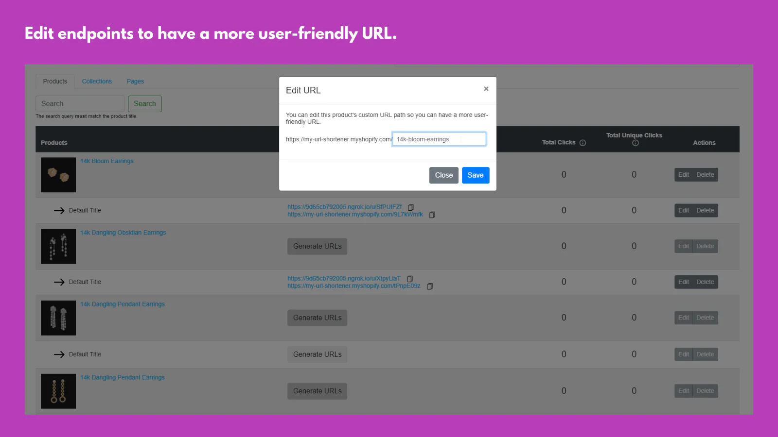 Products, Collections & Pages : Create custom URLs for your products (including variants), collections and pages!