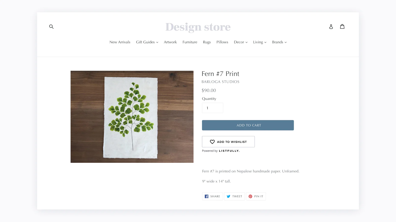 Customers can (easily) add your products to their Listfully by clicking on the “add to wishlist” button. They can manage their listed products via the Listfully website and can easily share their lists with others.