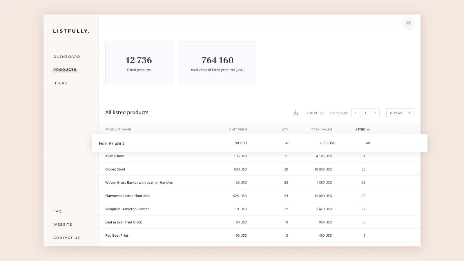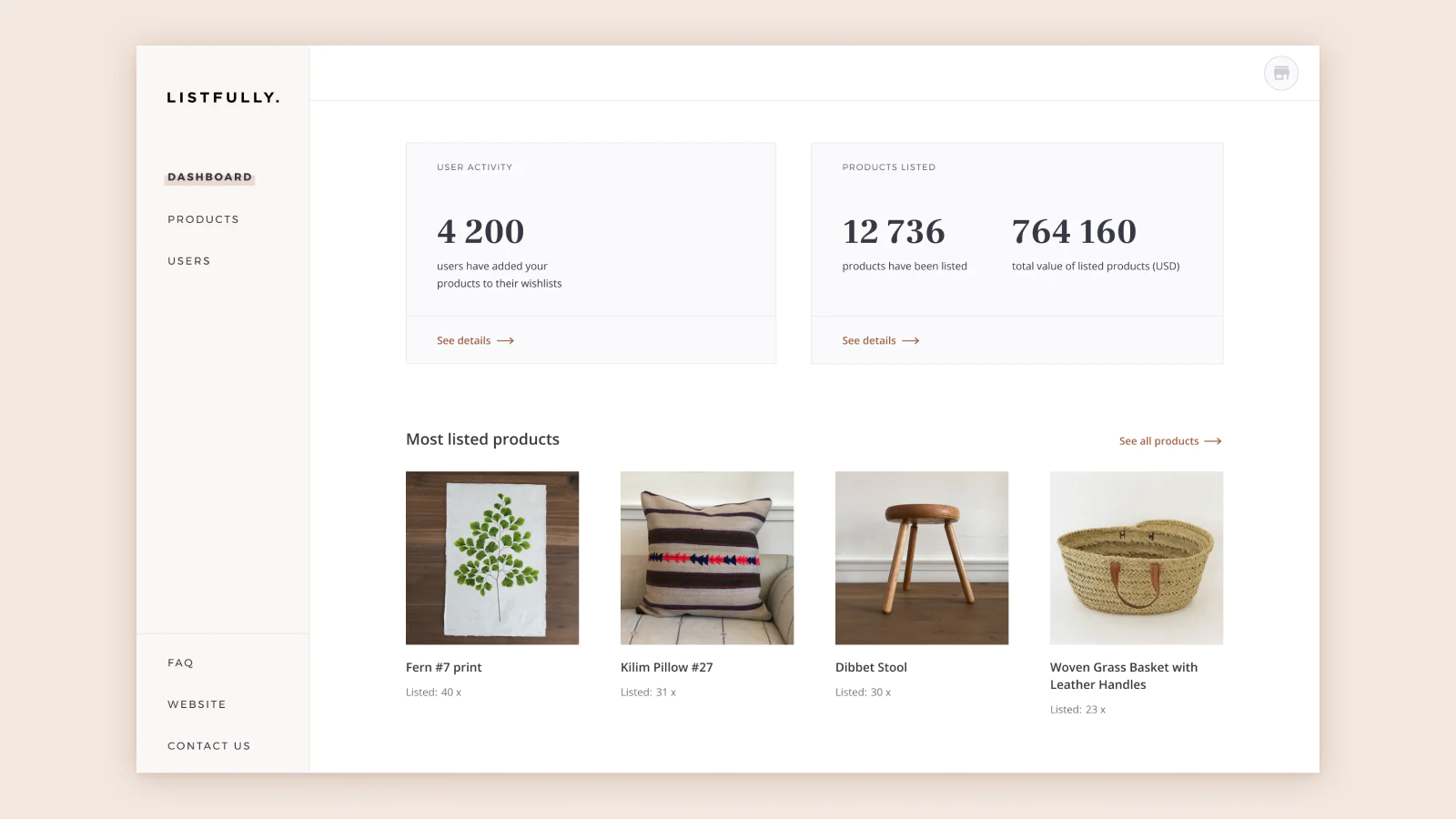Find out which of your products customers list the most. Get a detailed overview of all your listed products on your Listfully partner dashboard.
