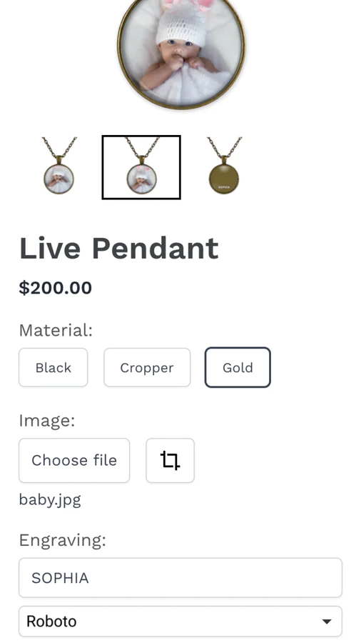 Use Live Product Options to create a custom personalized shopping experience with unlimited product options and a live preview of the product.