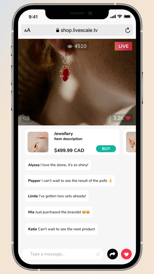 An essential mix of Livestream video, e-Commerce, and social media, Live Shopping first emerged in China and has since grown to become an essential sales channel for brands worldwide. Adapted for all industries and featured by Vogue, GLOSSY, and Wall Street Journal, Livescale’s Live Shopping solution brings social media to your Shopify store, all while increasing sales conversion, data ownership, and community engagement.