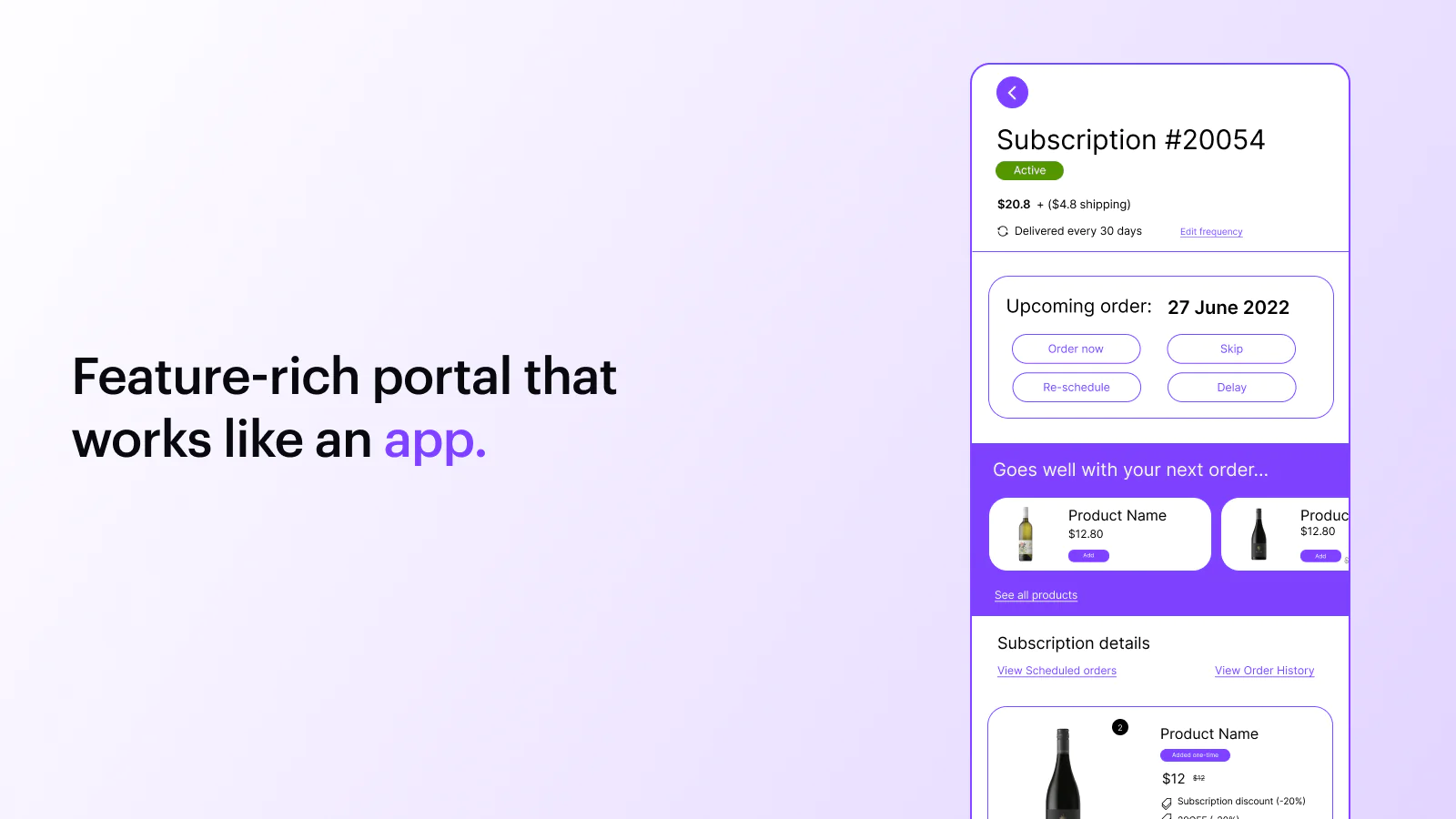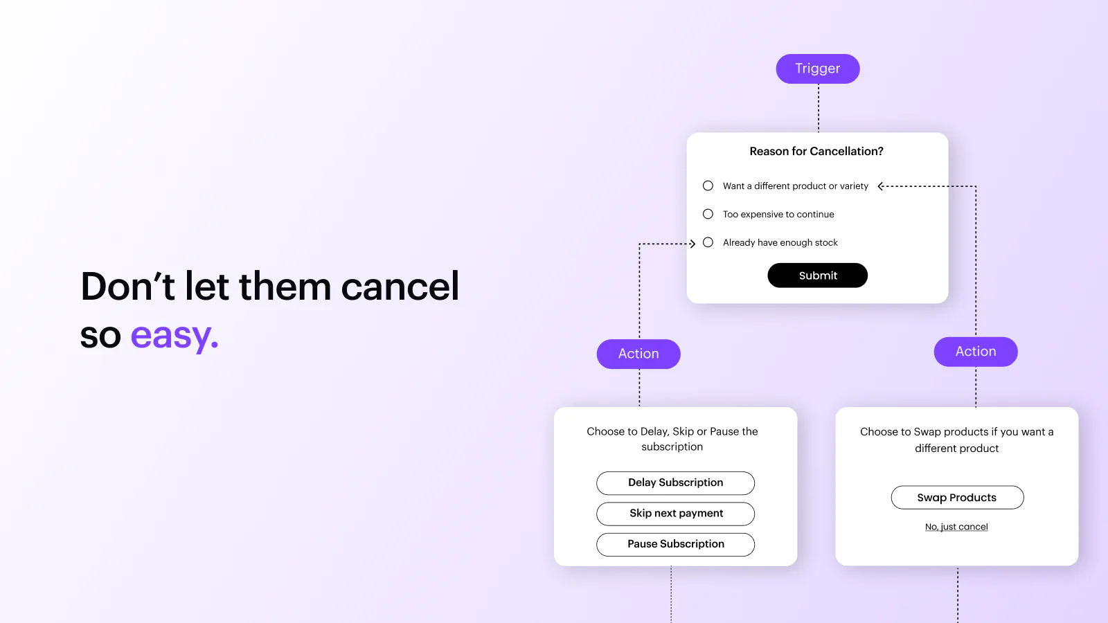 Build complex subscription flows: Swap product types(variants), add trial products to upsell or cross-sell.