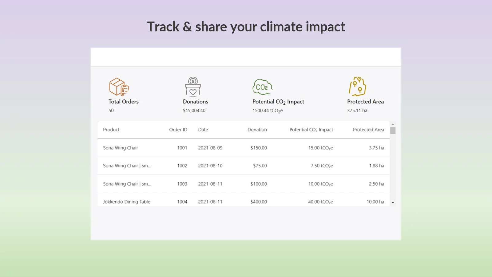 Easily make climate impact, boost your conversion rate, create customer loyalty and drive high-intent traffic to your store.