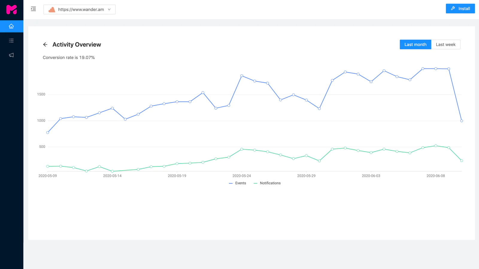 Track engagement : Track social proof metrics, how many events, notifications and overall engagement.