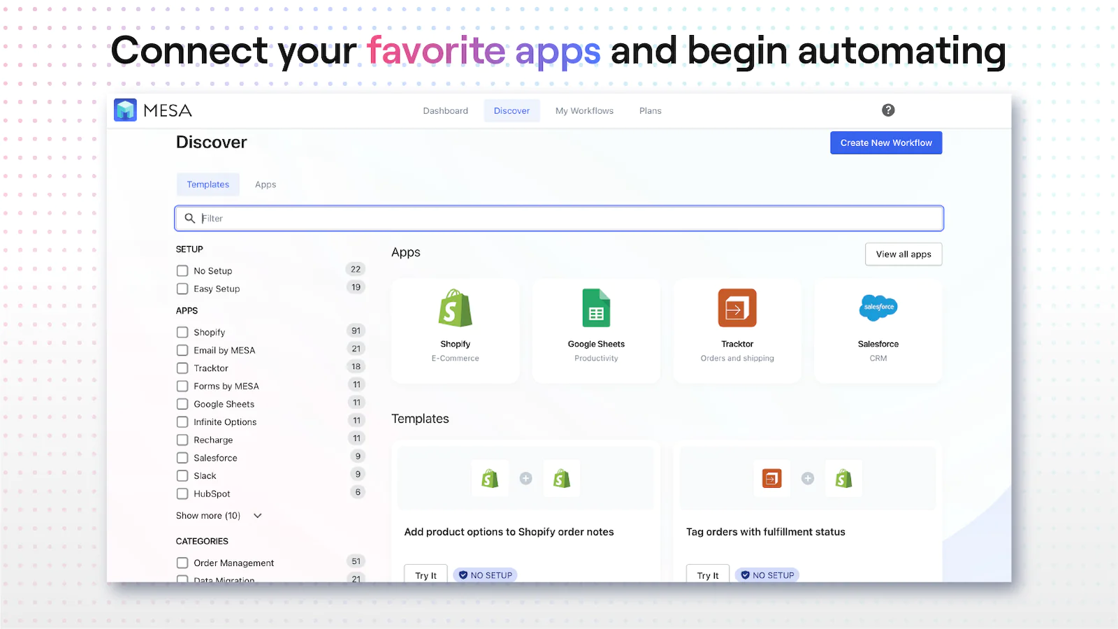 Get started with ready-made workflow templates or start from scratch. MESA unifies all your tools to provide a central source of truth for your business.