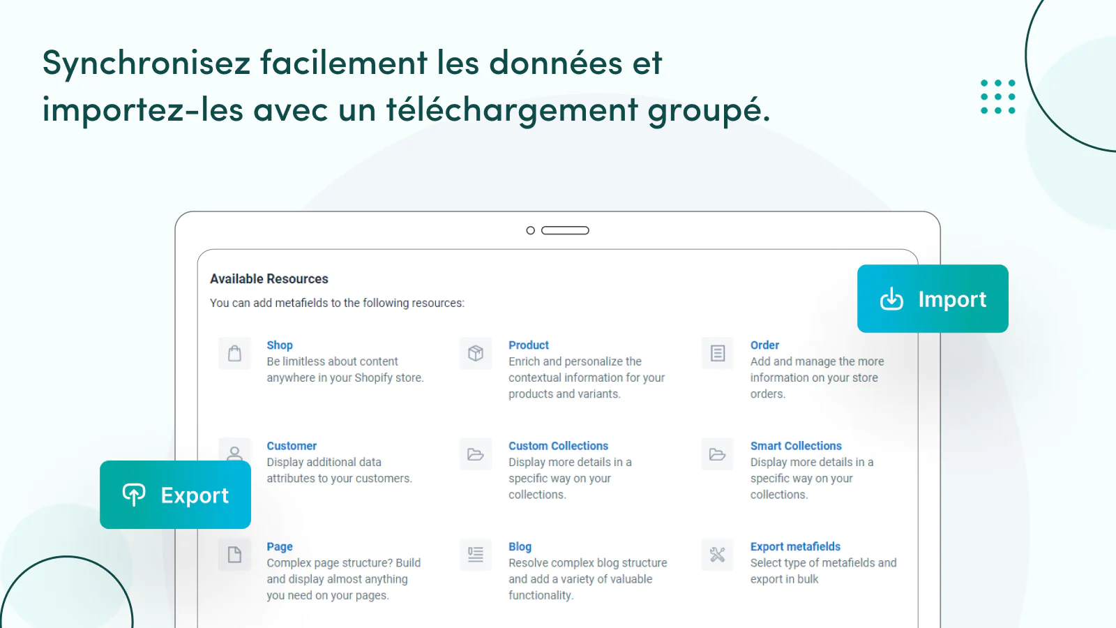 Robust Import/Export : Sync data with ease. Import using bulk upload, or fine-tune exports.