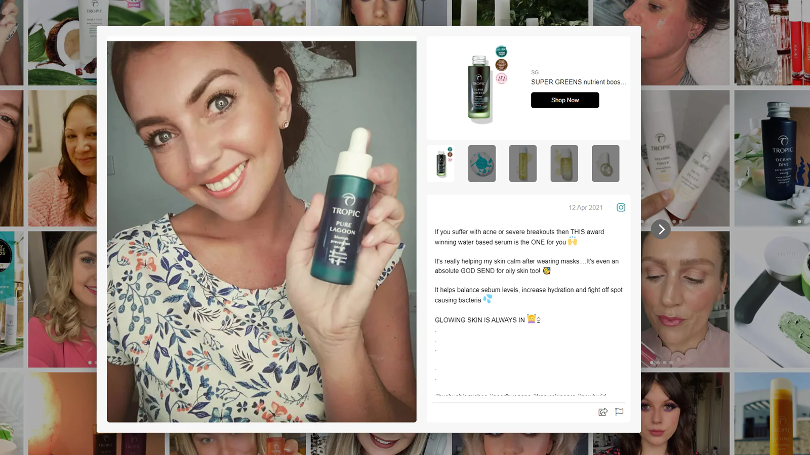 Consumers are looking for images, videos and reviews from others, to help validate their purchase decisions. Place shoppable UGC along the path to purchase to give prospective customers the confidence to buy.