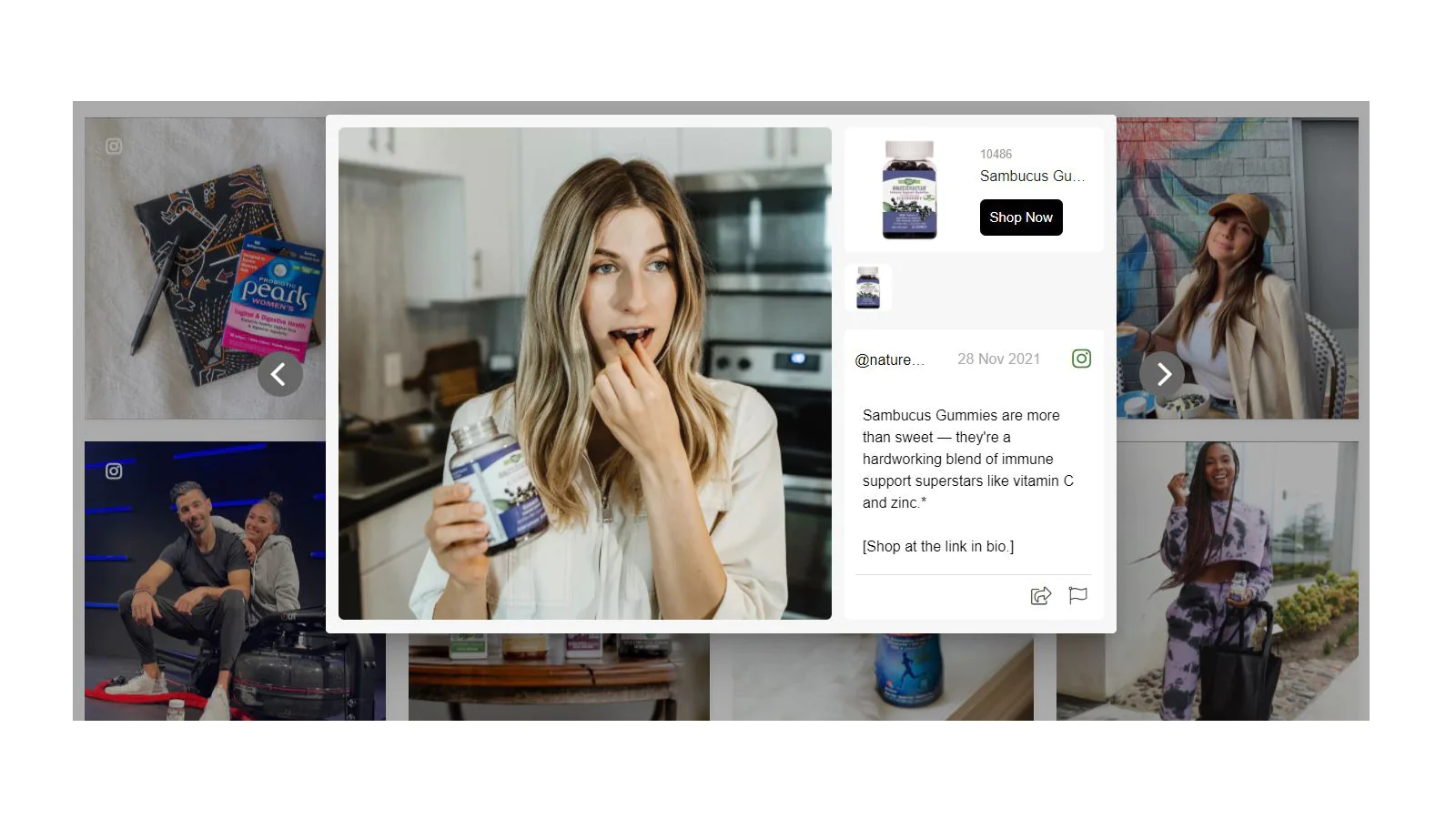 Create Shoppable UGC Galleries : Match SKUs with great UGC to make Instagram, TikTok and other social media shoppable across your product detail pages.