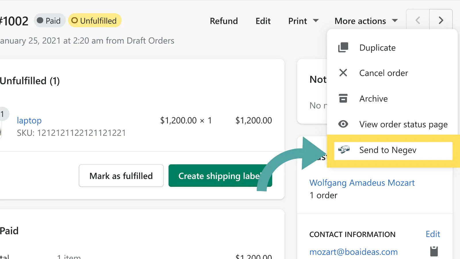 Time saving : Easily Generate your Negev shipments directly from the order view in your store admin.