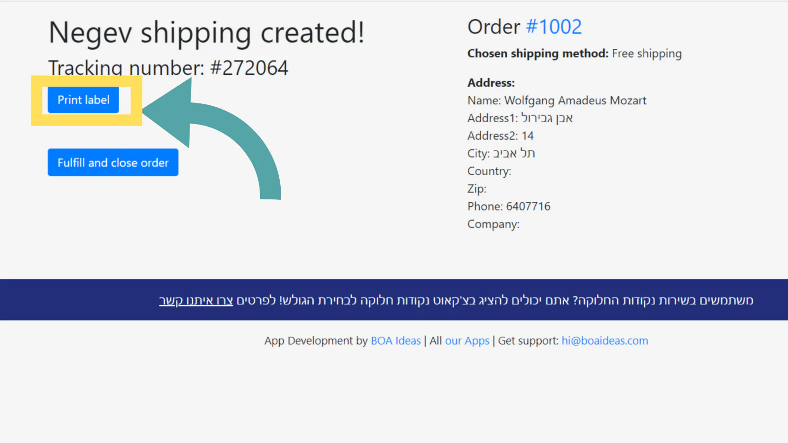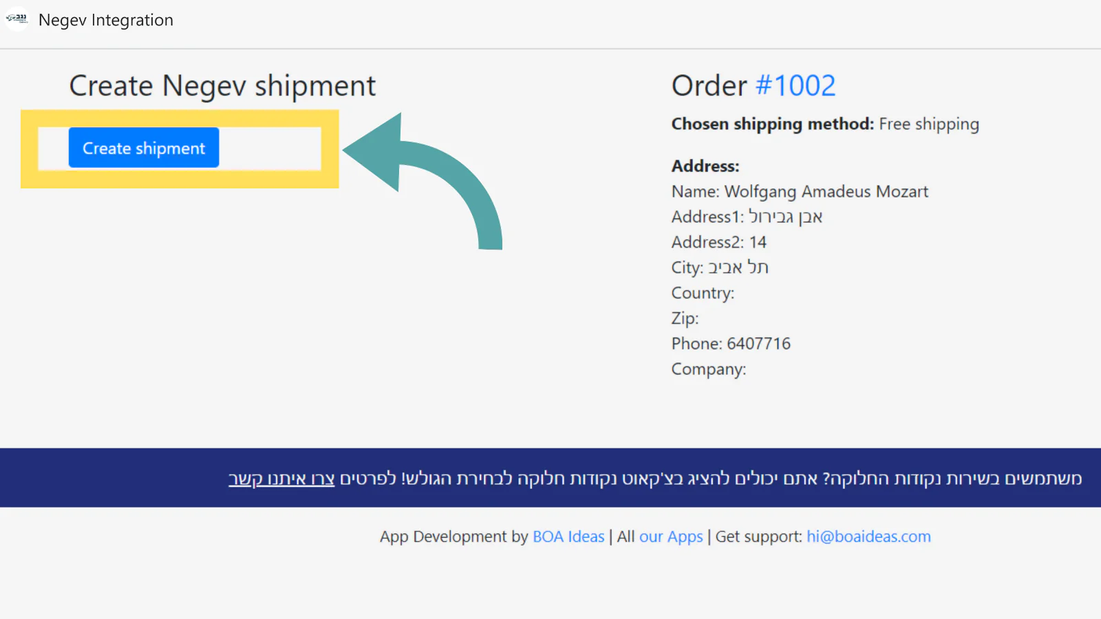 Easily create shipments for Negev shipments in Israel