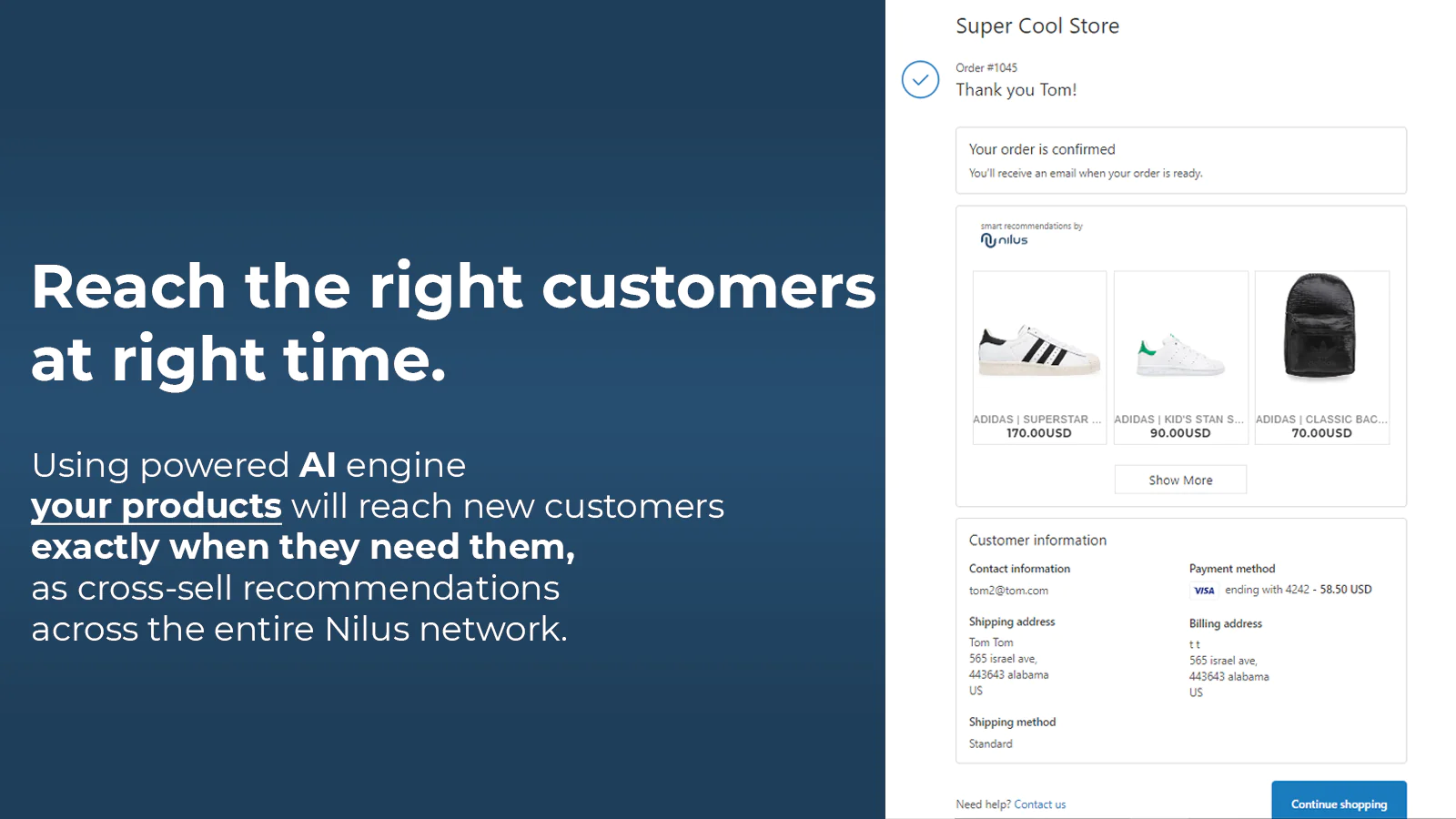 Nilus uses post-purchase recommendations to drive more sales.