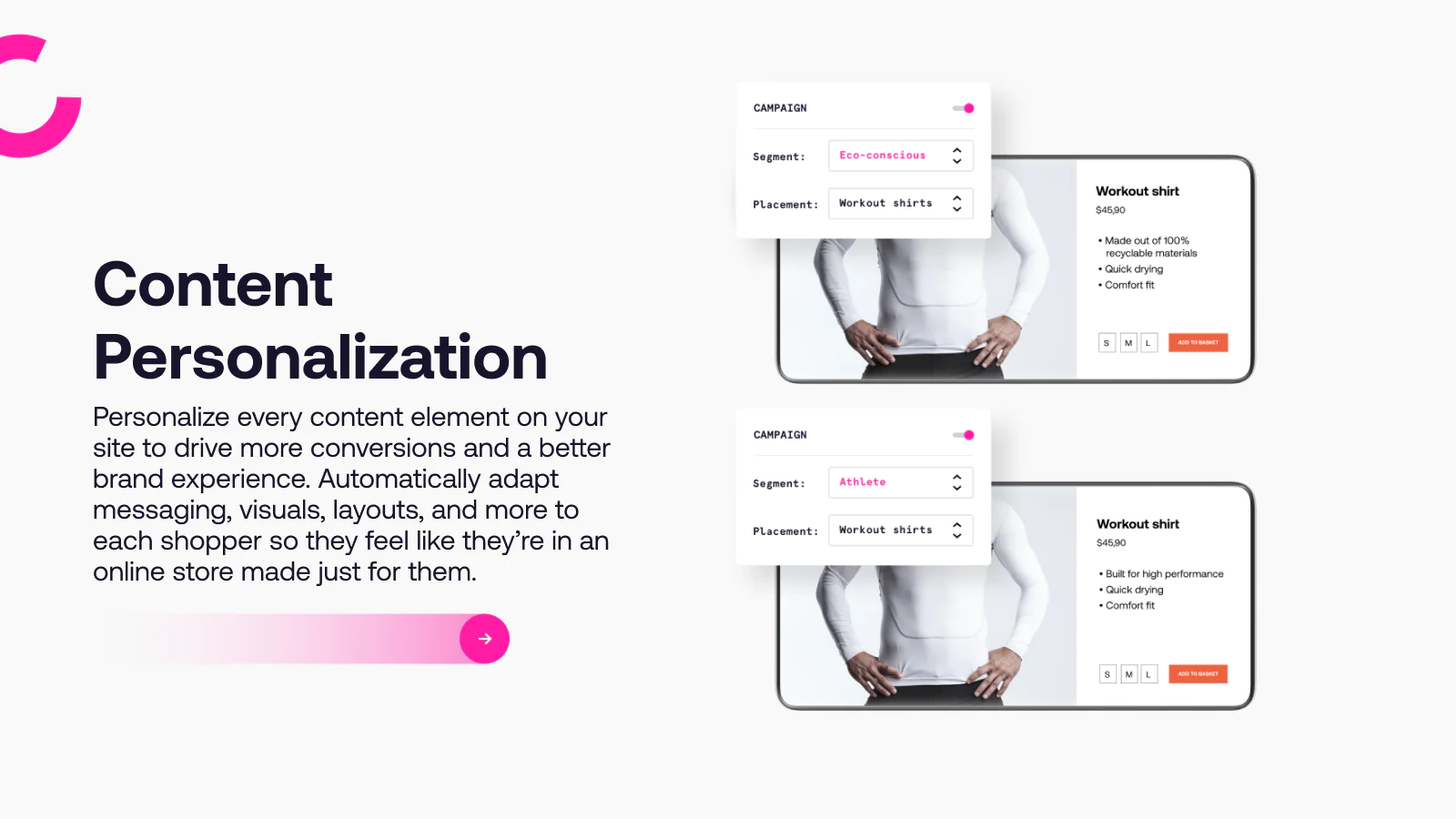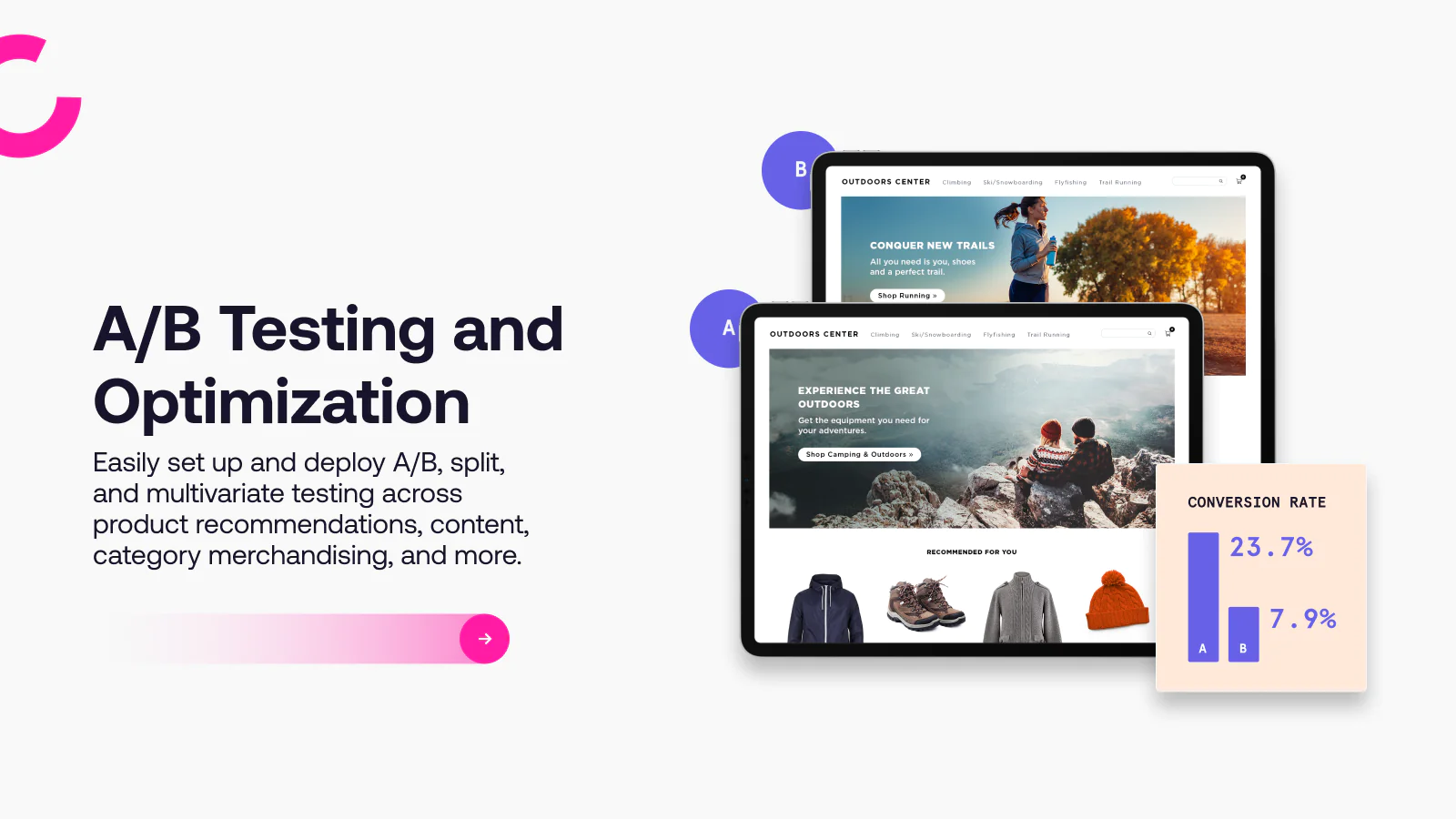 Quick Deployment : Whether you work with a theme or have a custom storefront, build and launch dynamic, personalized experiences for every shopper in minutes.
