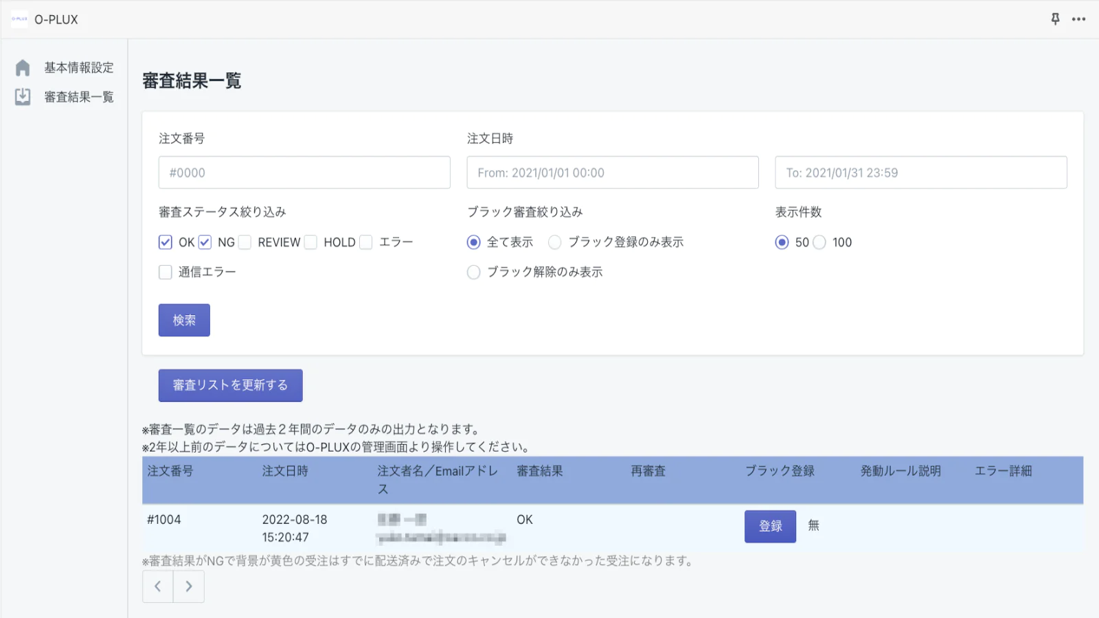 Shopify と 不正注文検知システム 「O-PLUX」を連携し、注文情報を自動で審査するアプリです。