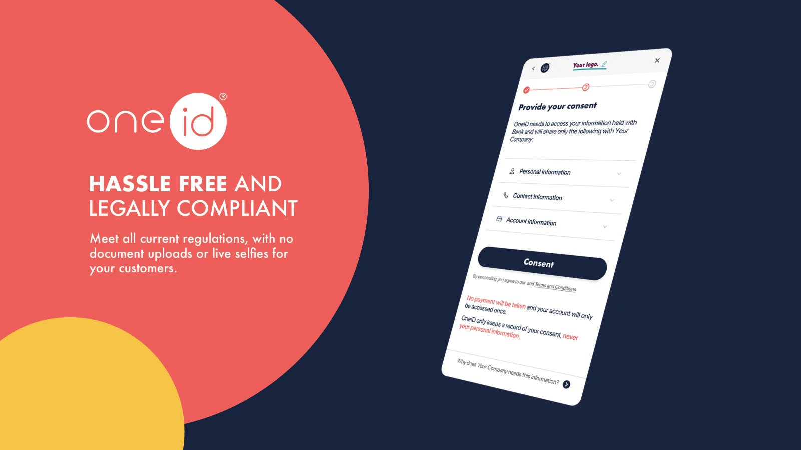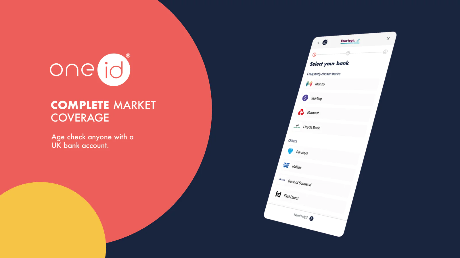 Complete Market Solution : Anyone with an online UK bank account can be verified by OneID giving you great market coverage.