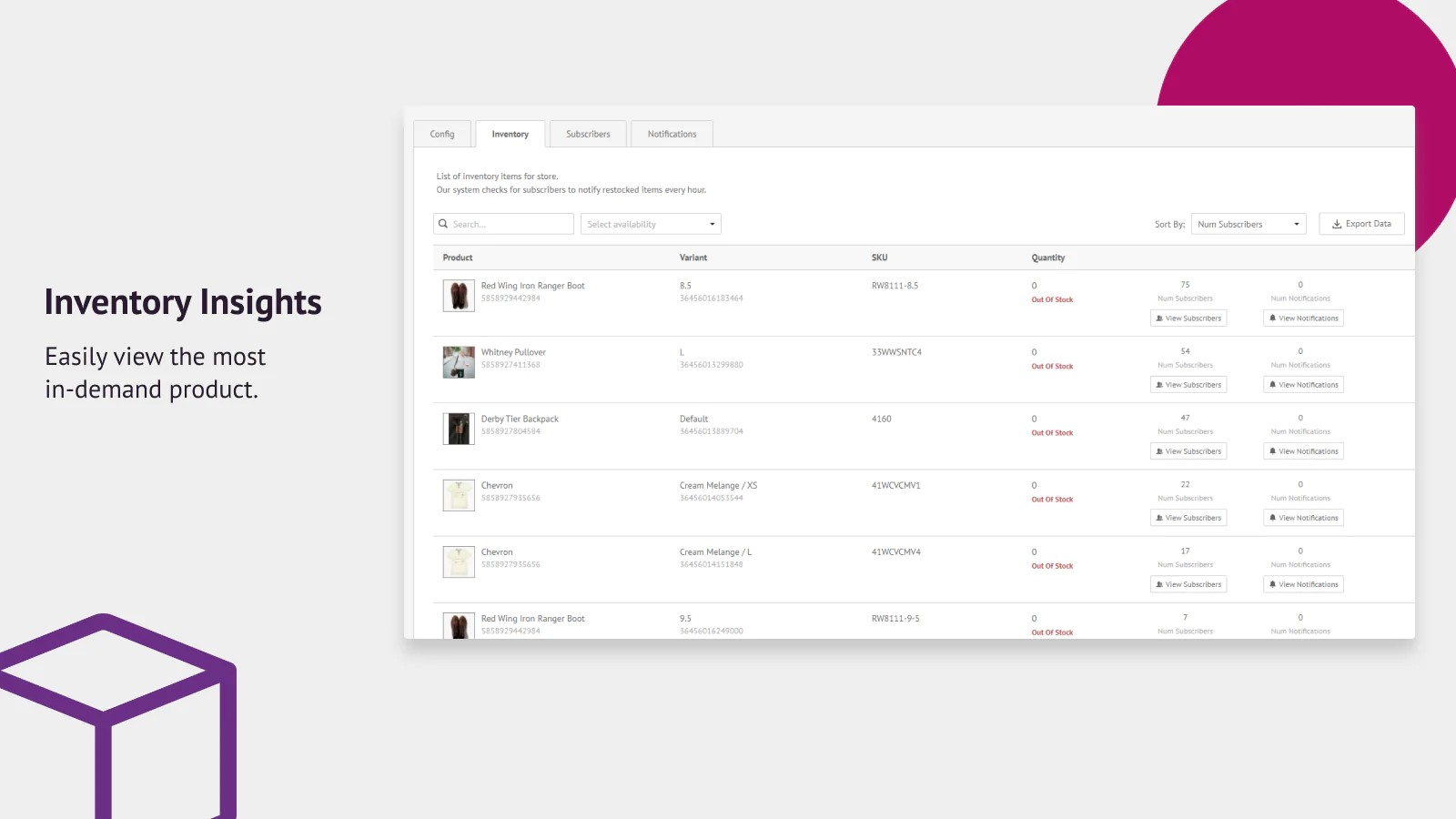 Now you can sync users who've subscribed for back-in-stock notifications to Shopify and other marketing platforms. Supported sync integrations.
