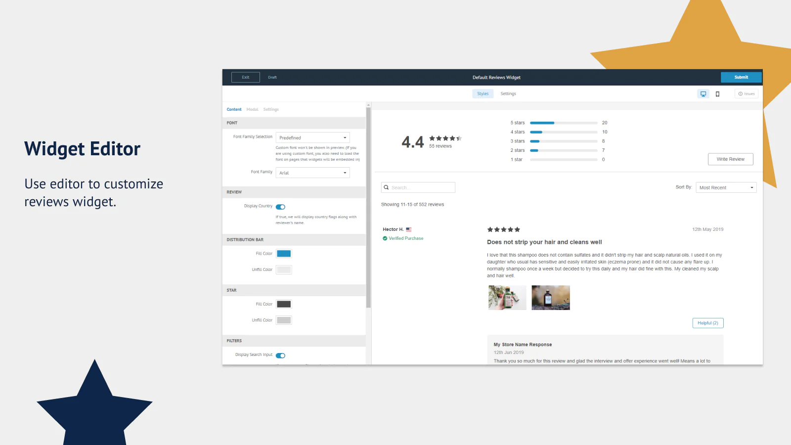 Sell More with Product Reviews : Embed reviews widget to sell more with with product reviews. Use it to display photo reviews and video reviews.