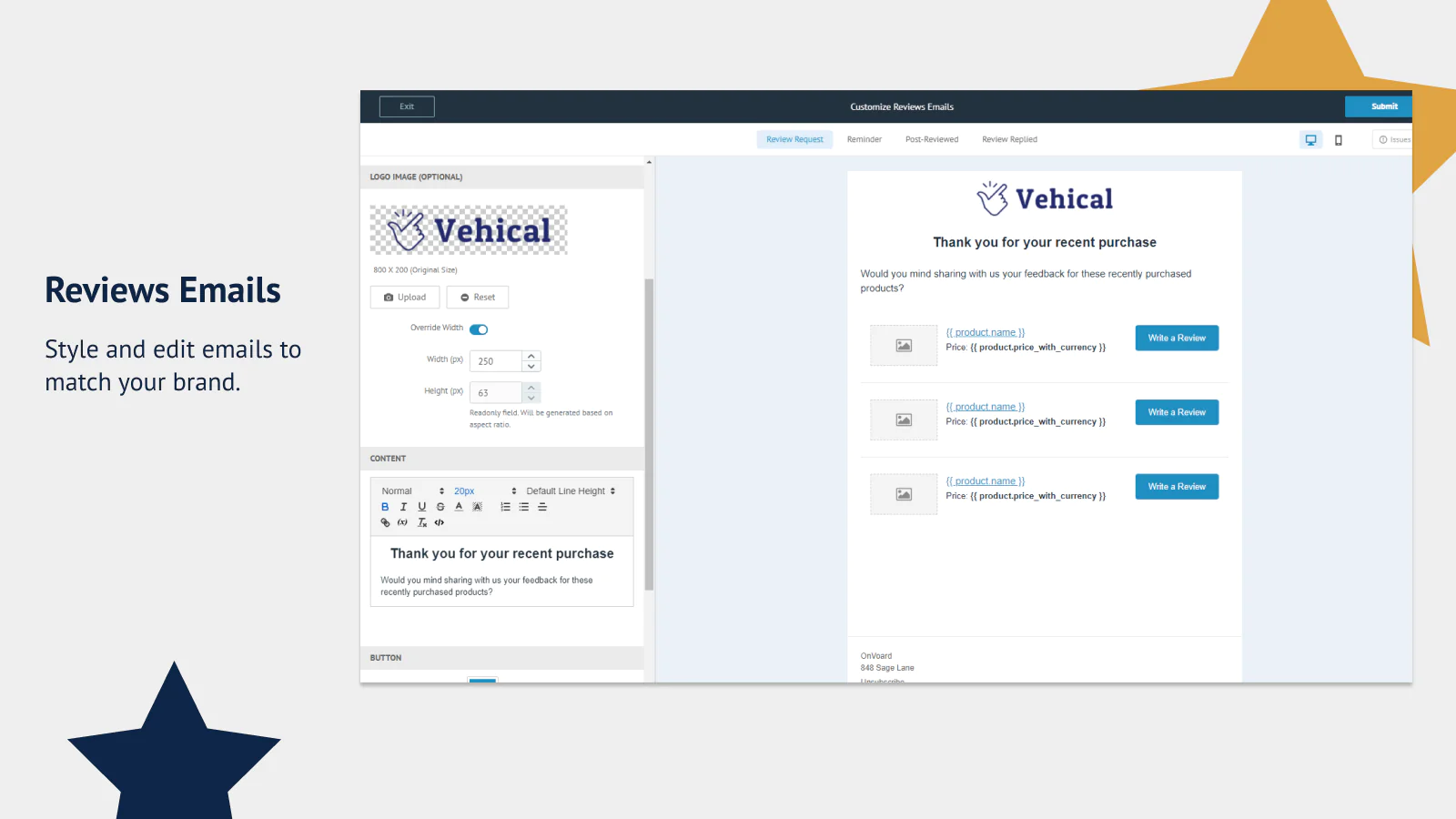 We don't just send a single review request email and call it a day. Using OnVoard's Reviews tool gives you the power to fully automate: