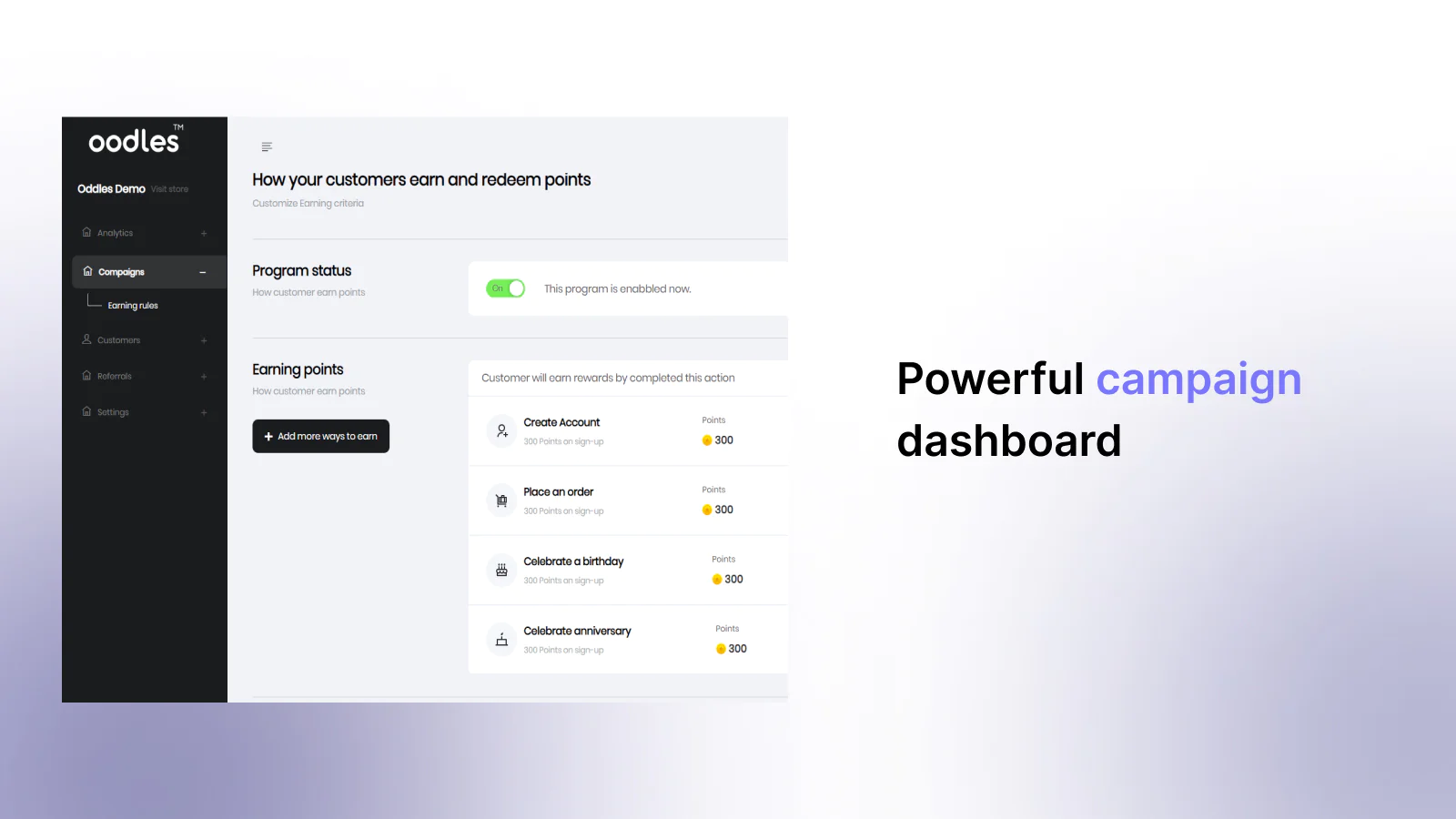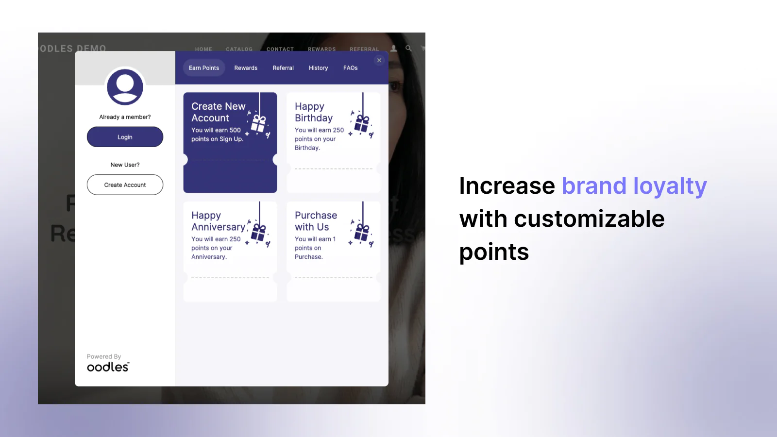 Oodles helps you create a powerful customer rewards and referral program for your store. If you're looking for something that's easy to install, powerful, and gives you the flexibility to reward and encourage your customers, Oodles can help drive more sales, grow your customer base, and increase lifetime value.