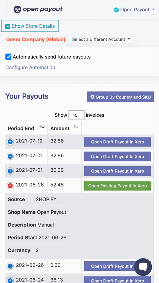 Zero Configuration and Setup : Open Payout does not require any setup or mapping . You can immediately open your Shopify Payouts in Xero and Quickbooks