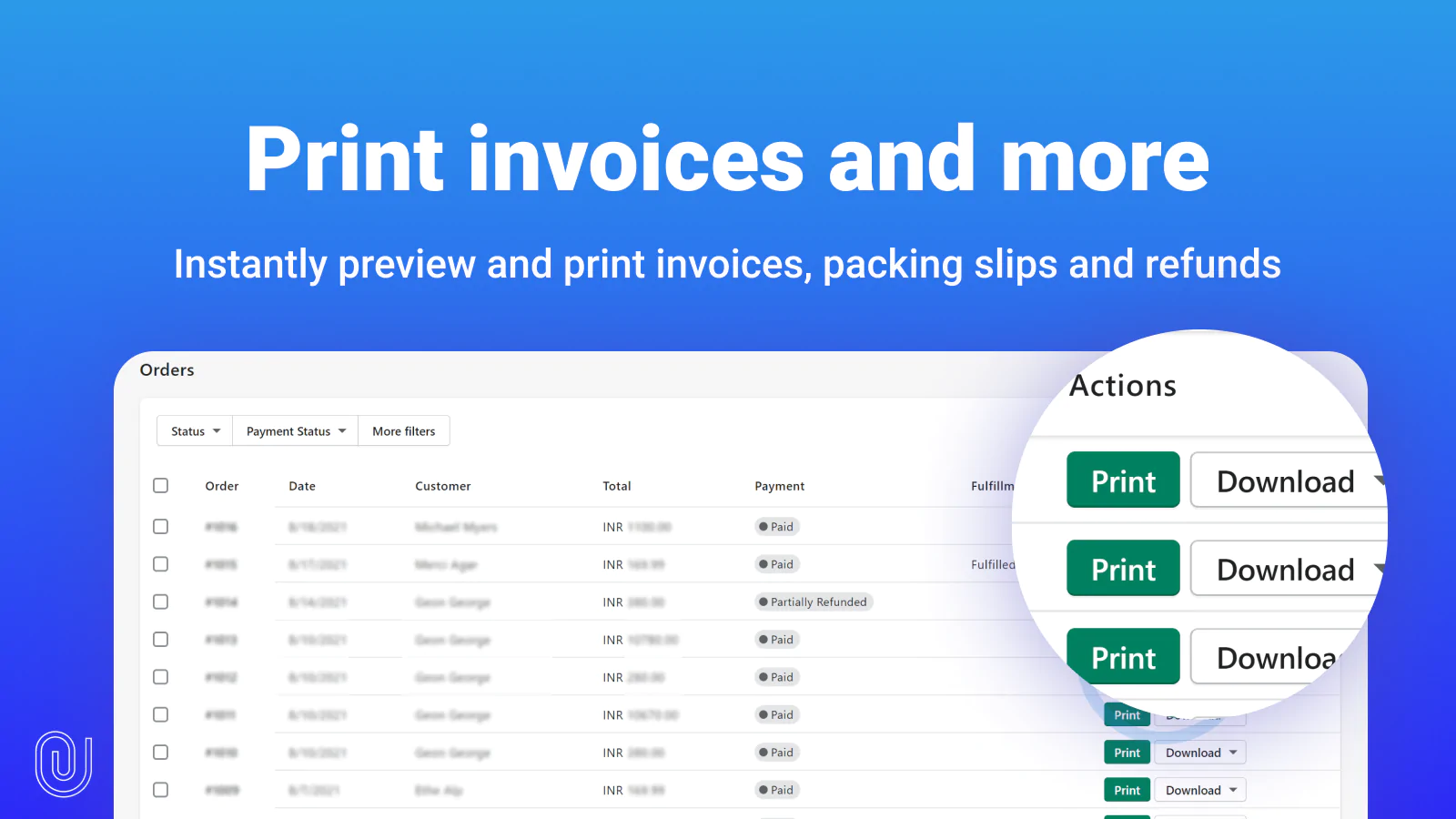 We can help you print & edit your invoice, packing slips, draft order and refund with notification mails, in a single step, so your users get all your updates with your custom features. All your custom receipts can be managed from a single spot.