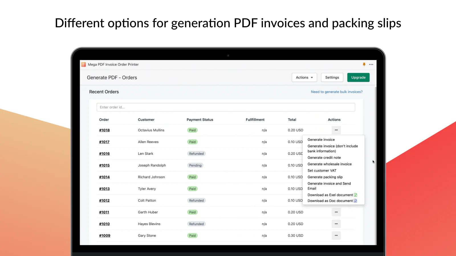 Manual & auto invoice modes : You can create PDF invoice and packing slip for any order at any time in just a few seconds