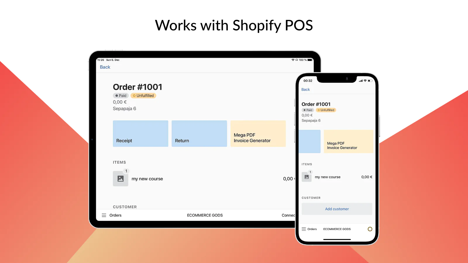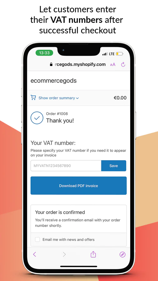 App provides an easy and coding-free way to send invoices for every order made on your website or download invoices using app's admin when needed.