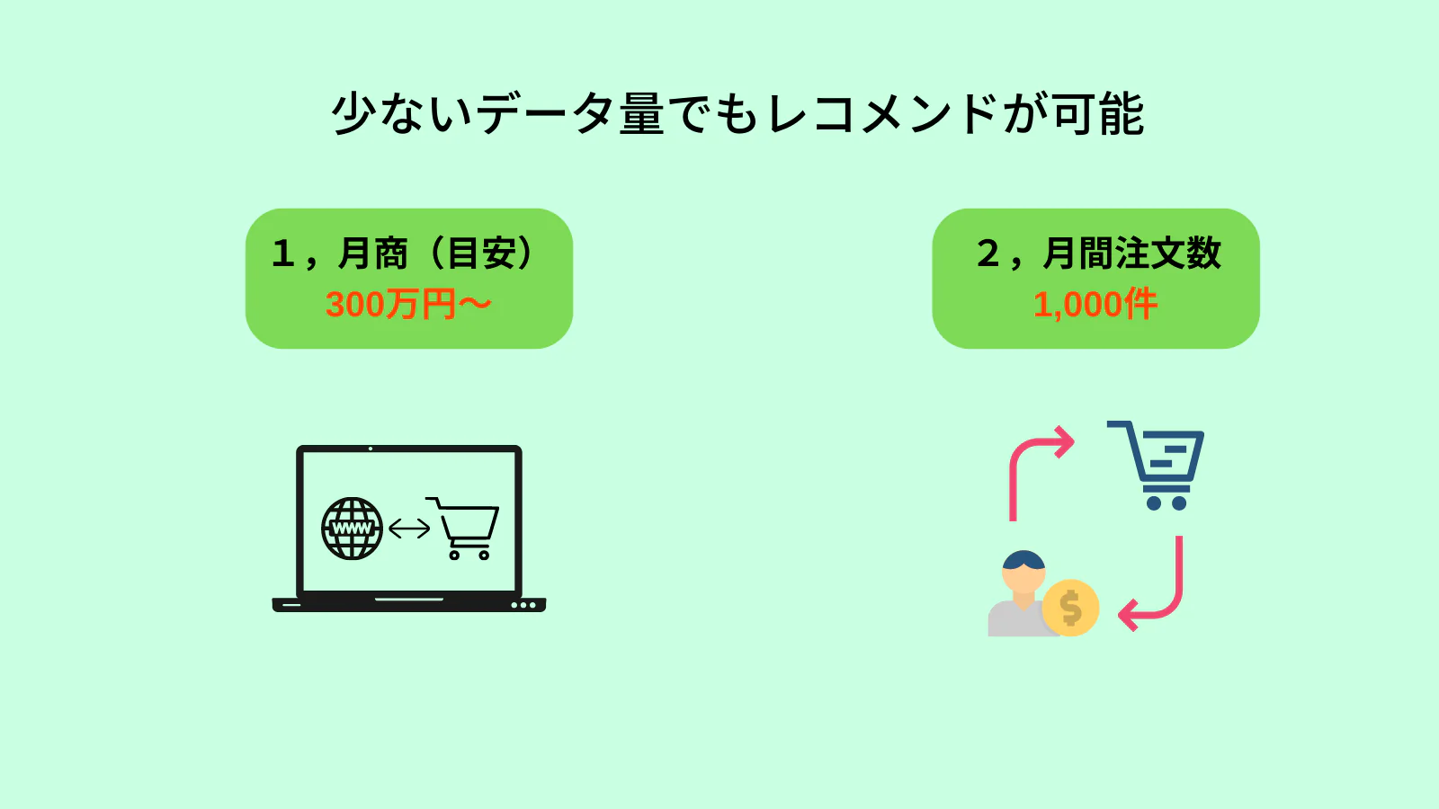 新規顧客獲得コスト削減 : データがない新規顧客に対しても、離脱回避するためのレコメンド発信が可能なので、新規顧客獲得にも繋がり、マーケティングの工数を削減し、顧客獲得に繋げる、レコメンドエンジンです。