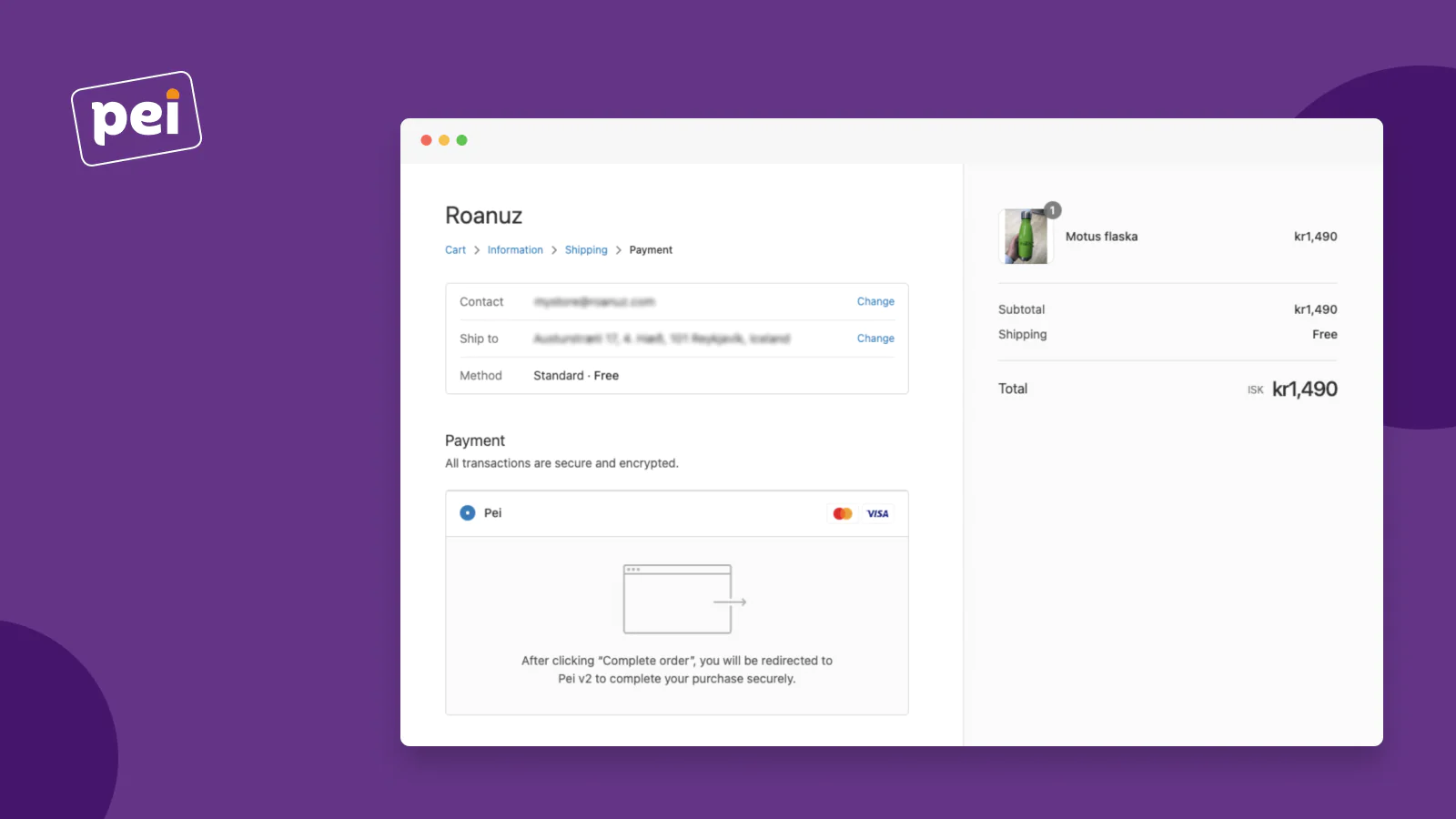 Ef þú vilt borga með Pei gerum við ekki kröfu um forskráningu í þjónustuna. Það er hægt að borga fyrir vörur eða þjónustu að upphæð 20.000 kr. eða lægra.