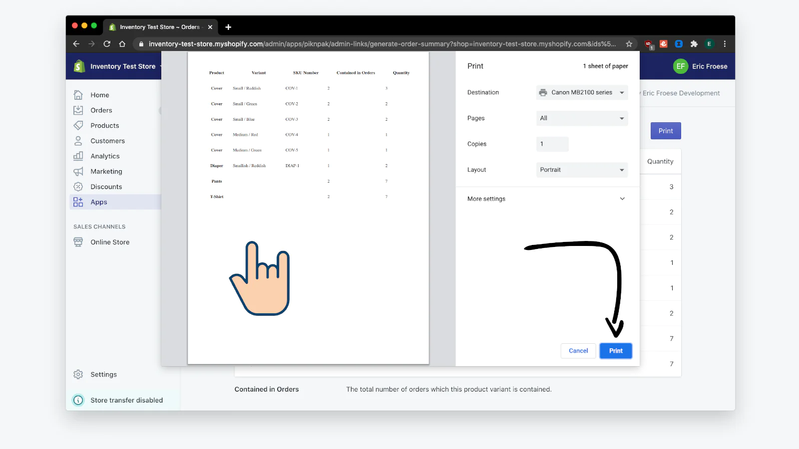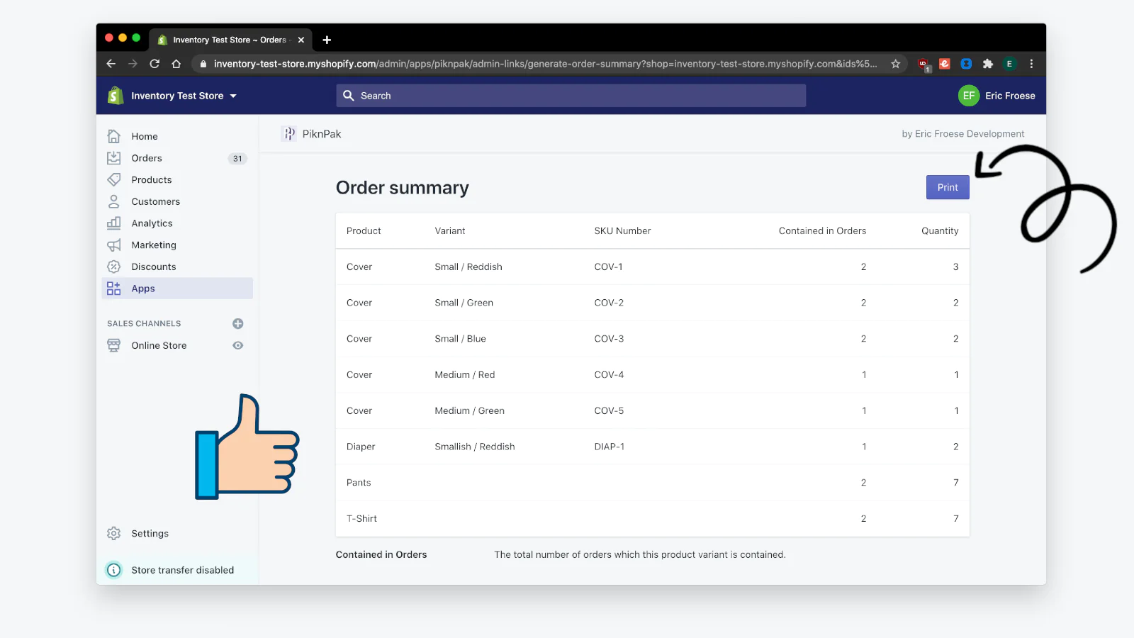 PiknPak lets you combine multiple orders into a single list of items which you can print and bring with you into your warehouse.