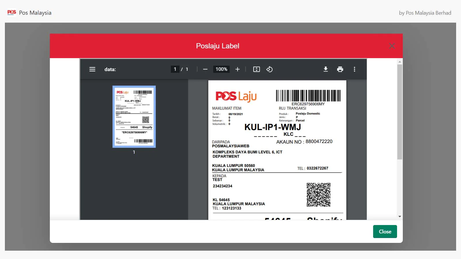 The Pos Malaysia Shopify App is your best friend in managing all your business' shipping needs! We'll help you create shipping e-consignment notes, manage existing shipment and track and trace all your parcels.