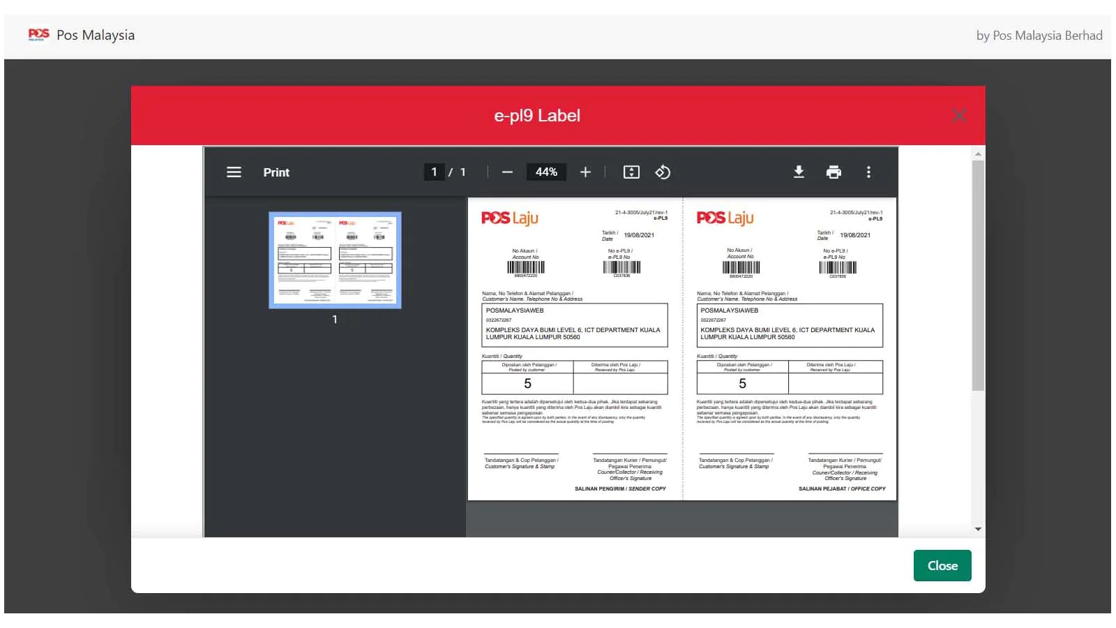 Note: To use this plugin, you will need a Pos Malaysia Corporate Account number in order to enable integration via the app. Kindly contact your Key Account Managers for your API Key.