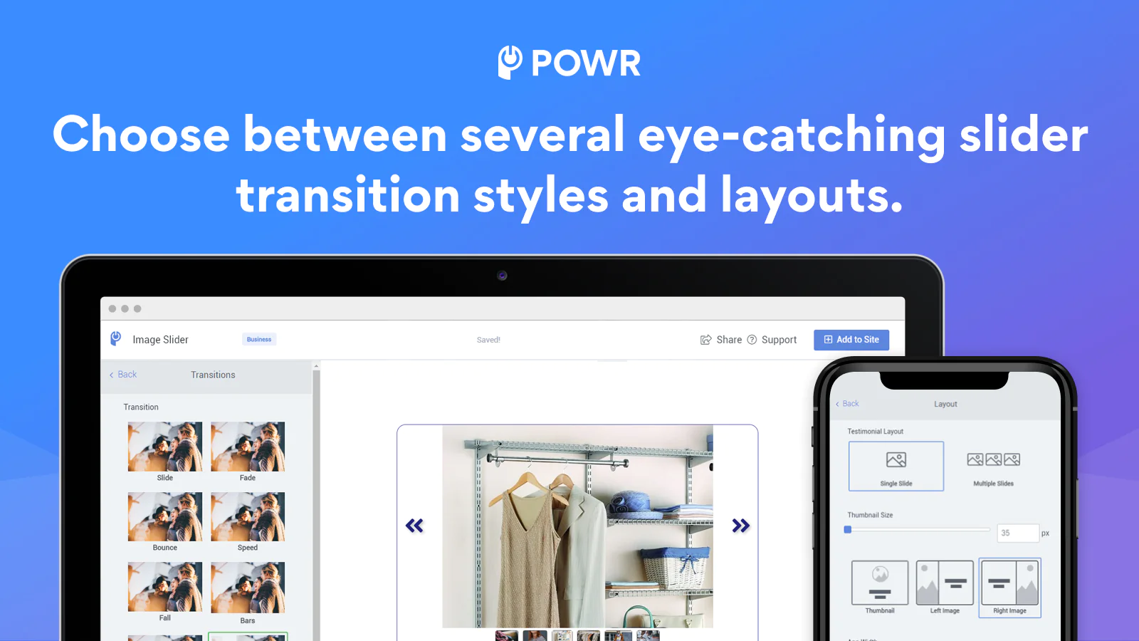 POWR Image Slider & Carousel is easy to install. Click on the ‘Add app’ button on this page to install the app. Create your Image Slider, and add it to any page on your Shopify site.