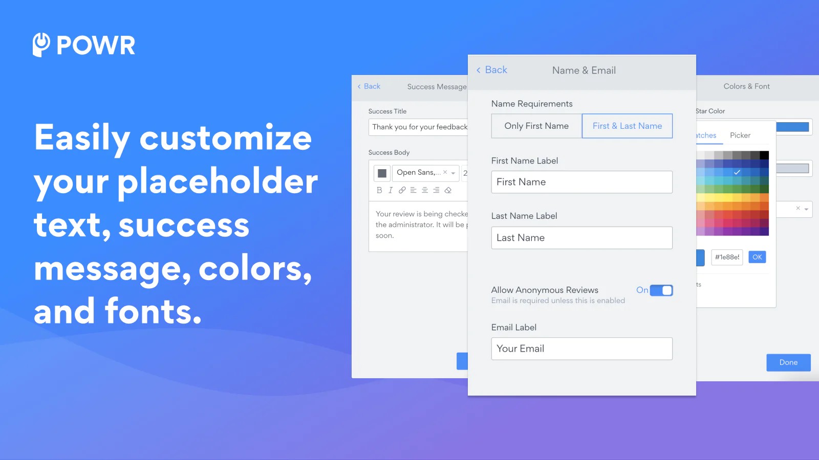 Product Reviews by POWR is the perfect solution for: boosting SEO, verified reviews, product reviews, product ratings, star ratings, customer reviews, customer feedback, boosting loyalty, customer testimonials, comments, and social proof through UGC.