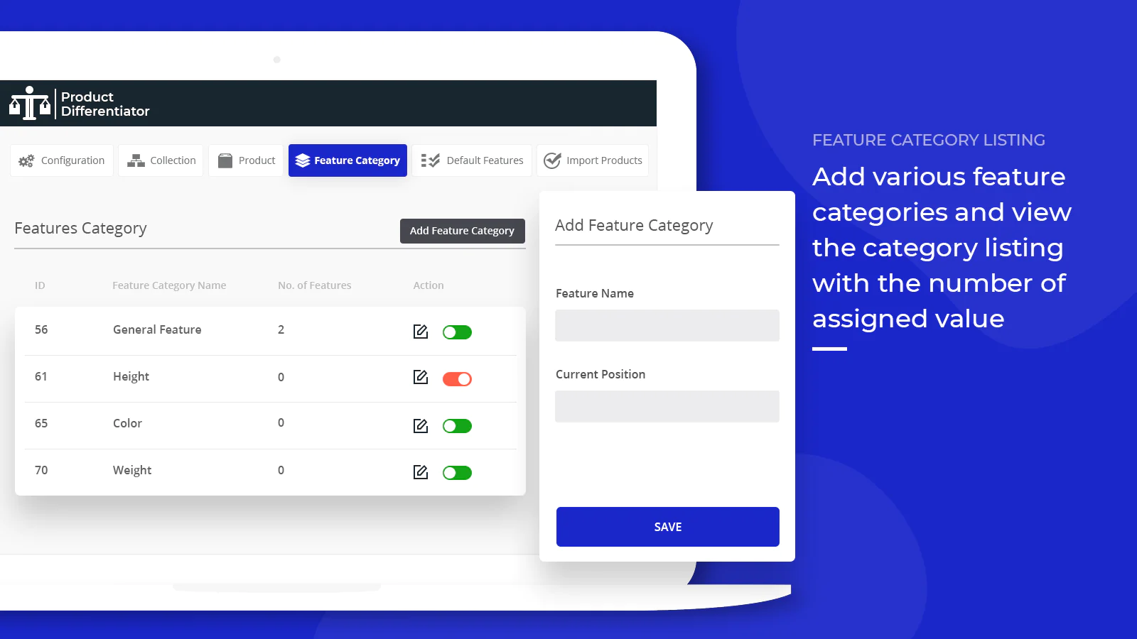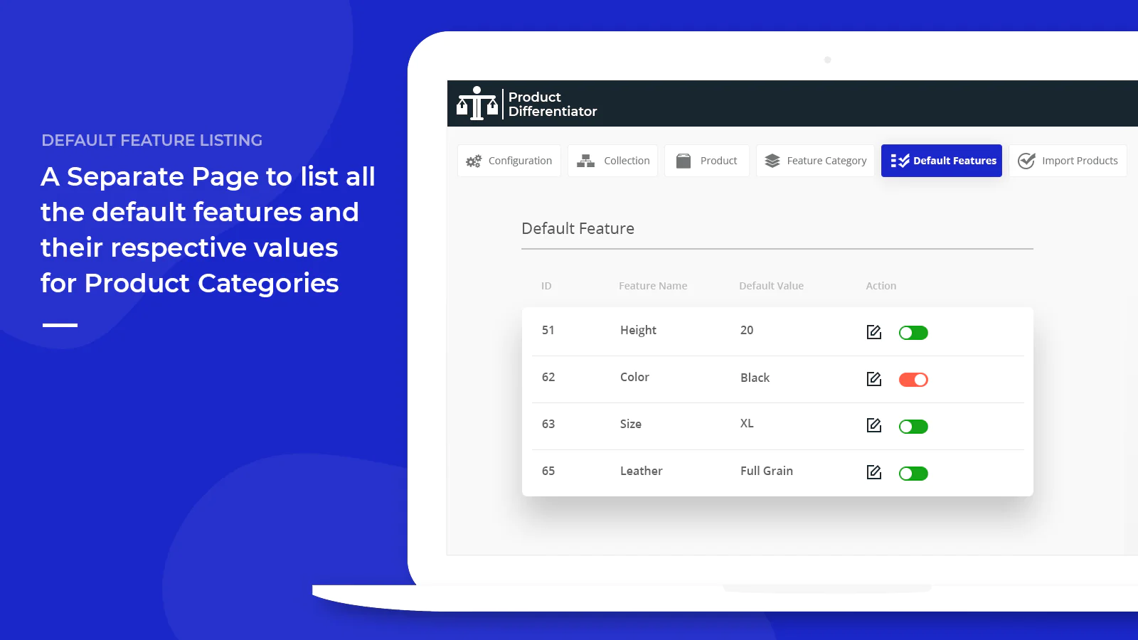 Product Differentiator- Now the Customer can compare the Products of same Category on the basis of the features added and assigned to the Product. This will help the Customers make the right choice for the purchase.