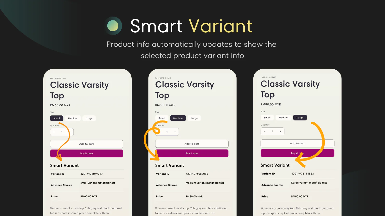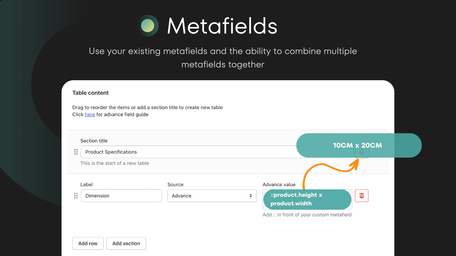 Advance fields : Link your product metafields to the table and display data accordingly to the selected product and variant
