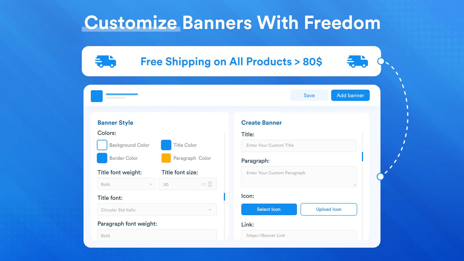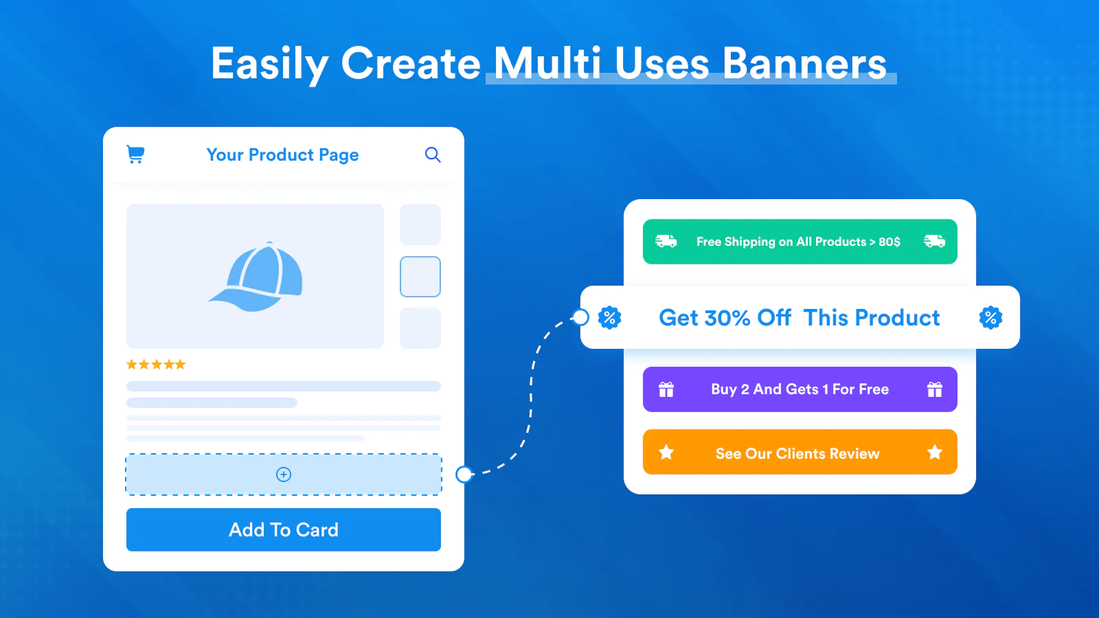 No Code - No Installation π― : Use our Canva-Like banner editor to create beautiful banners. Choose what products to display it on & voila!.. Now they appear on your site.