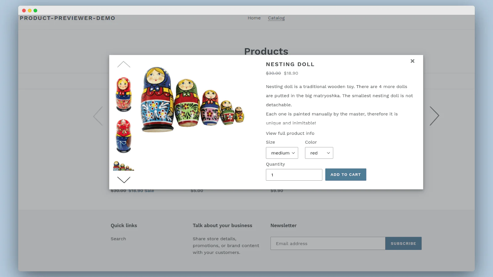 Product Previewer allows your customers to have quick view of product details and add product to the cart without redirecting to product page and reloading the whole site.