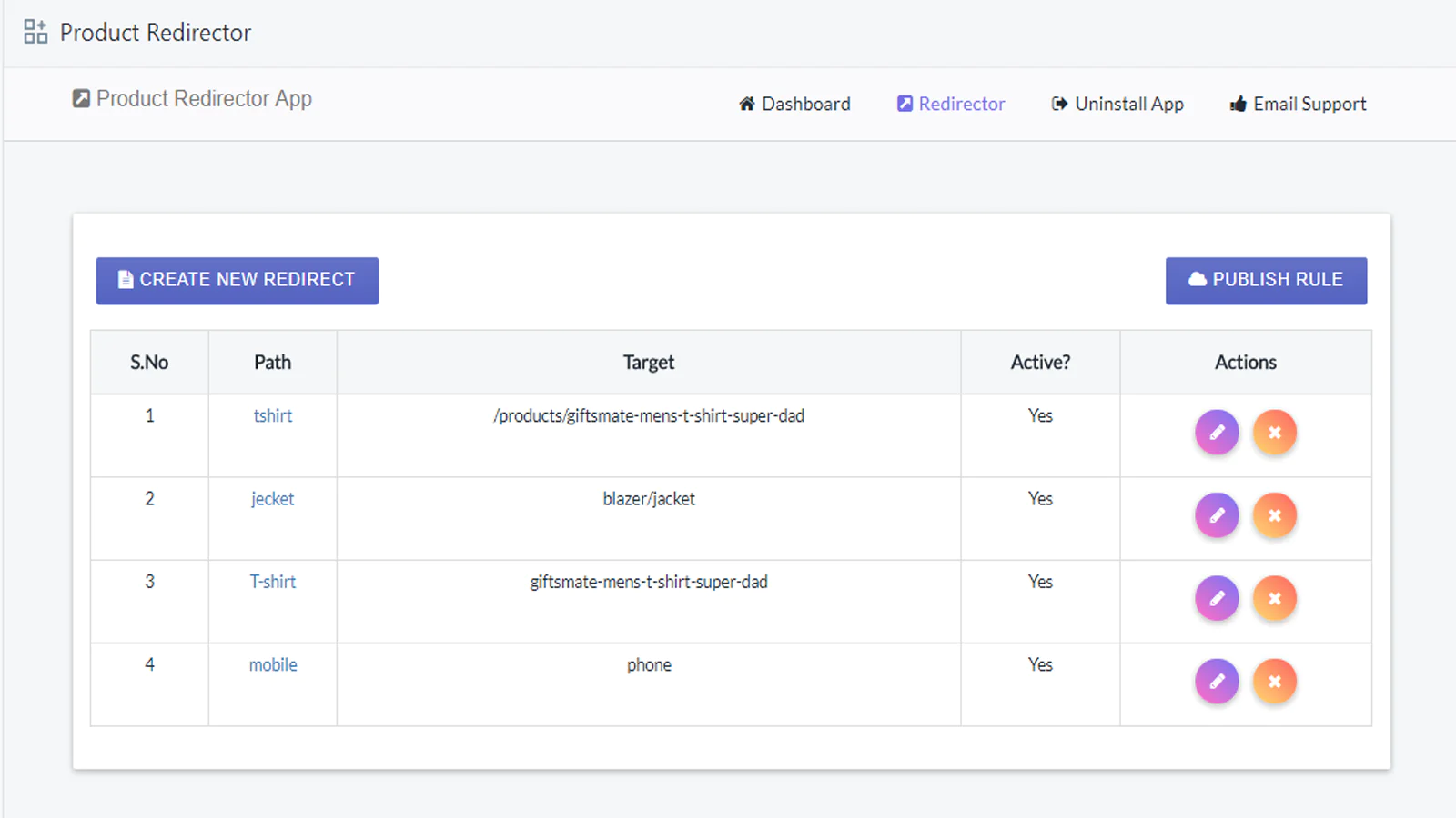 Using Our Redirect App you can redirect your customers from error or old URLs to new and correct URLs. You can redirect any URL to another URL in your store or another store URL path. By using this you will never lose any customer because of new or Error URLs. You can manage internal and External URL redirect using this app.