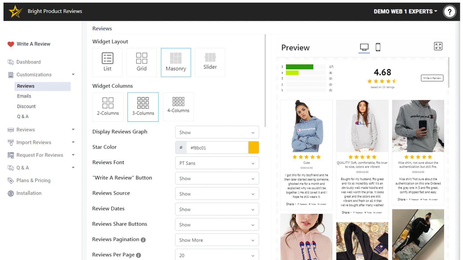 Bright Product Review APP is an amazing reviews app Shopify which helps merchants to collect reviews with Photos & Videos that look great. We understand the challenges in the competitive market & continuously working hard to help our merchants in online selling.
