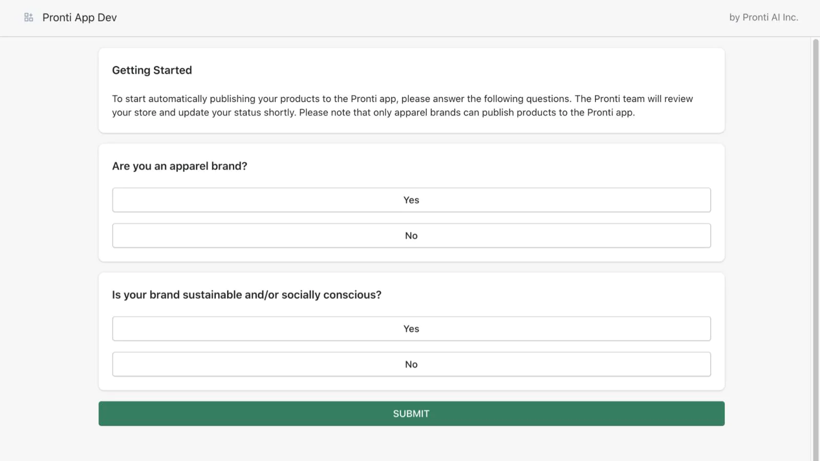 The app automatically recommends your apparel products to users of the Pronti consumer app. To get started, please follow these steps: