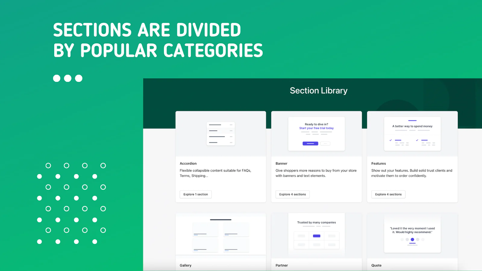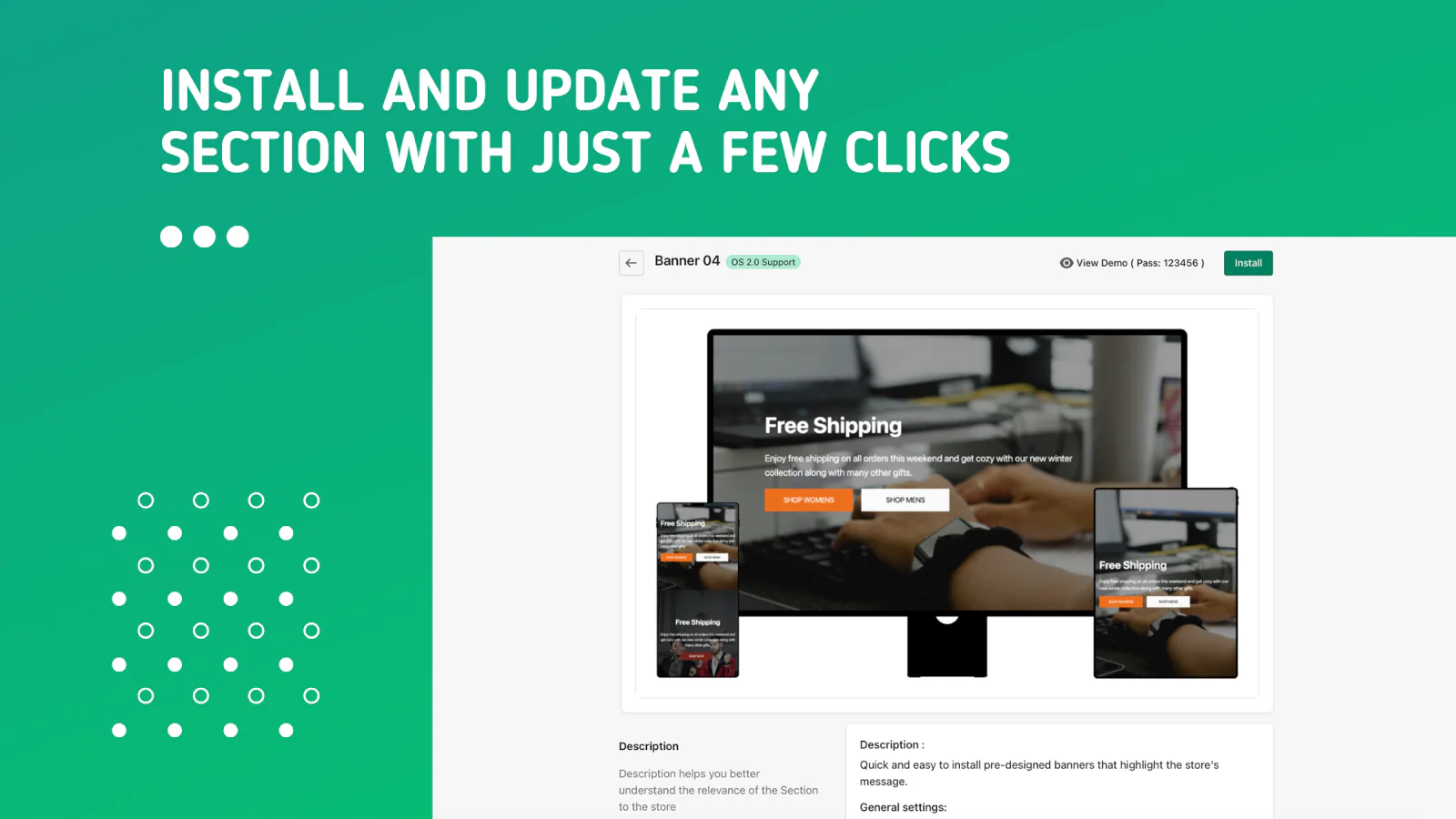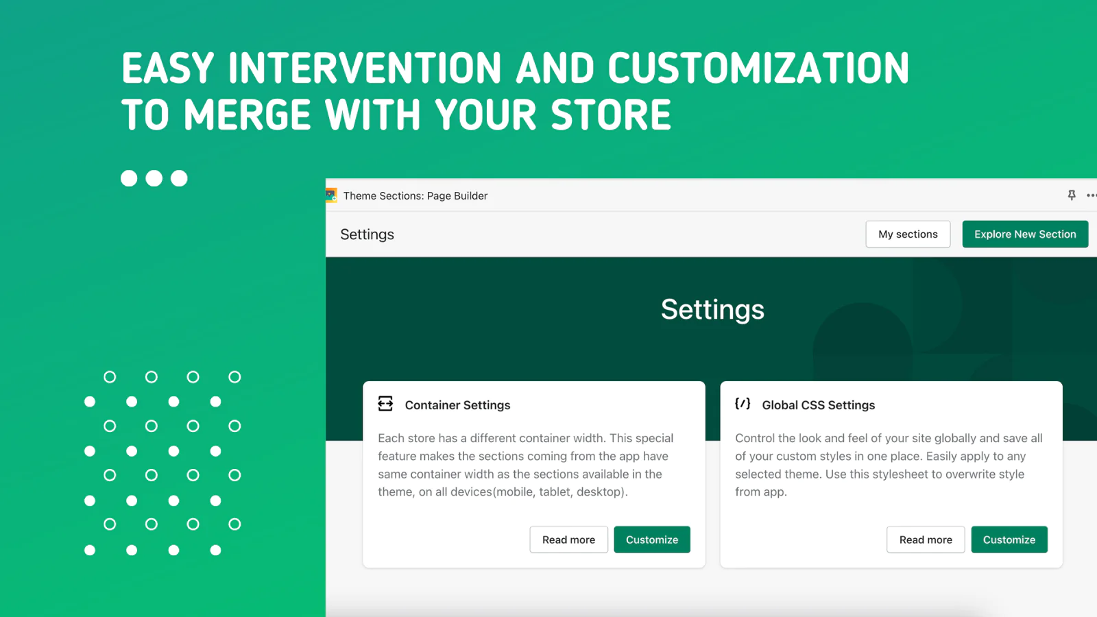 Install, settings and match : Keep the continuity and dominant design language of the store with the massive set of settings included in each section.