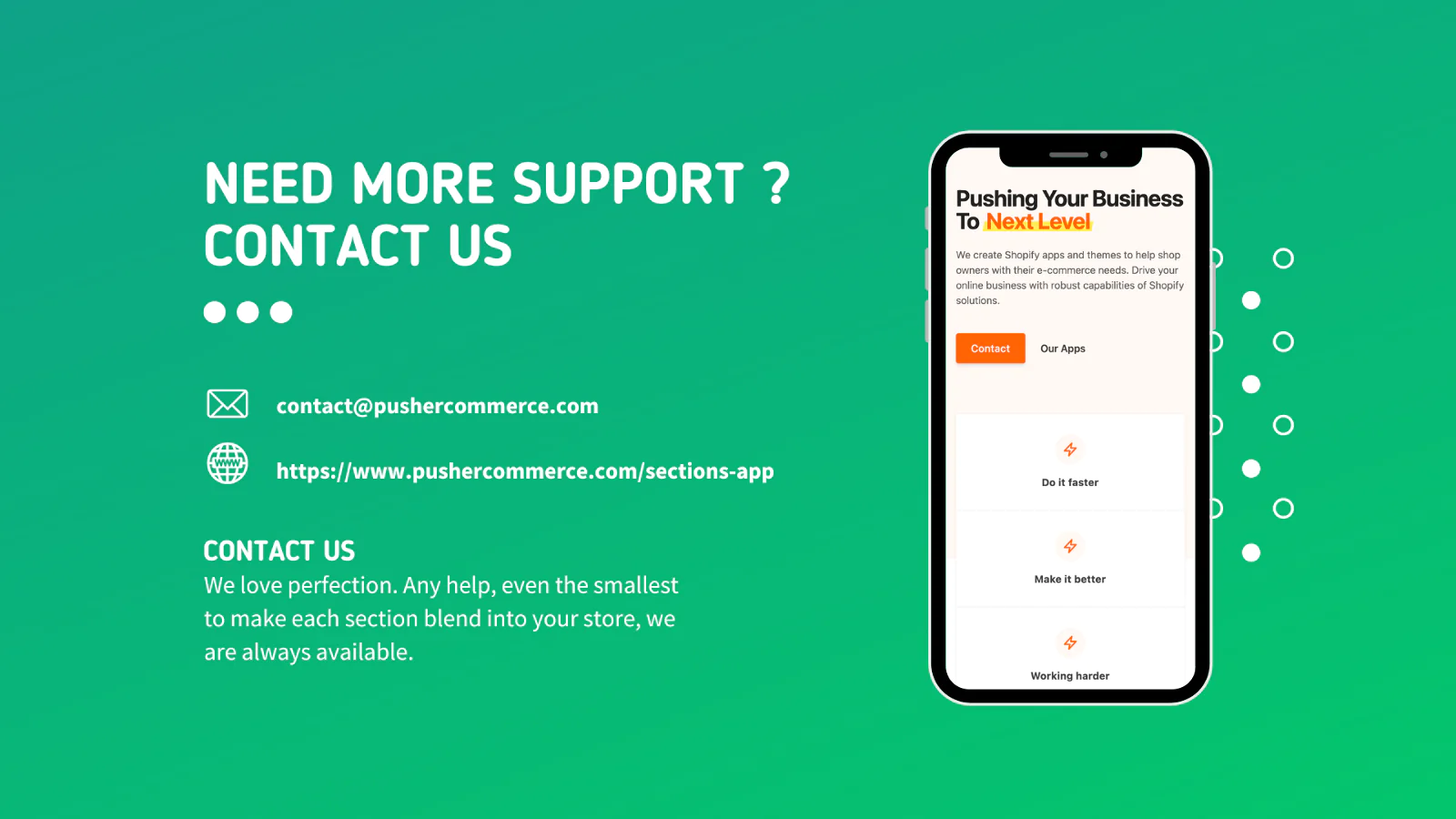 We are here, with only one purpose, to help Shopify stores grow and bring in the highest revenue. So whenever you feel like you need help, don't hesitate to contact us. We will try our best.