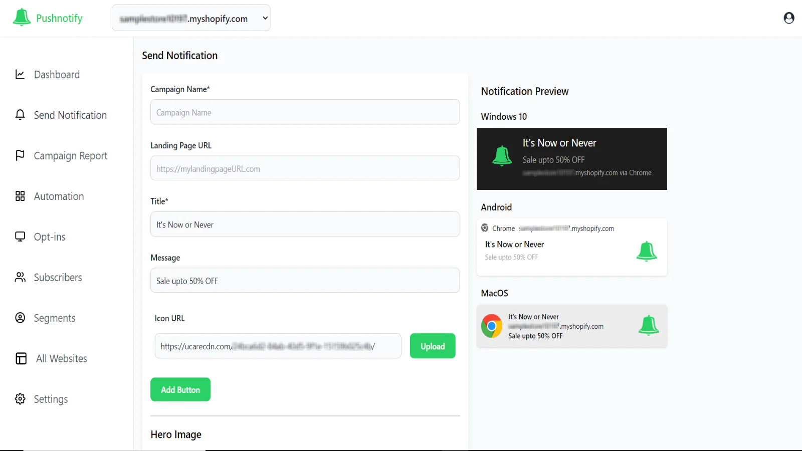 Increase Sales : Pushnotify helps you boost sales by sending push notifications about new products, promotions, and discounts.