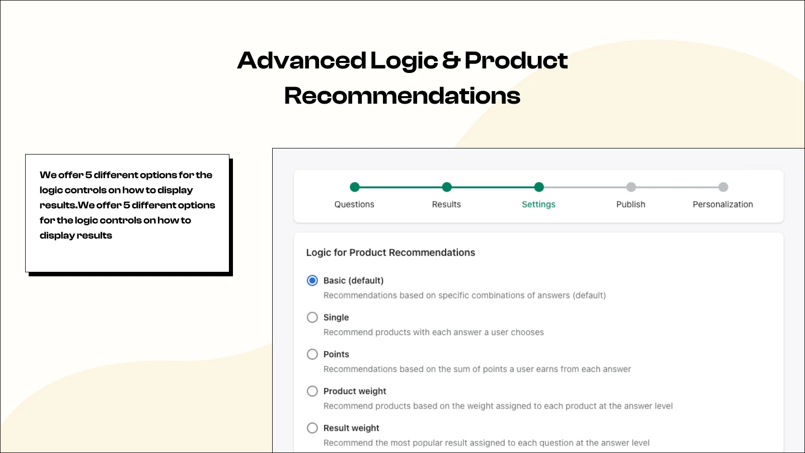 6 logic options for recommending products & results (no other quiz app offers this):