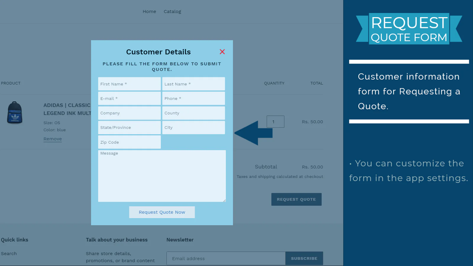 Request Quote Button in Store : Simple and easy one-click install Request to Quote button for customers in your store. No need to edit theme files for request quote button.