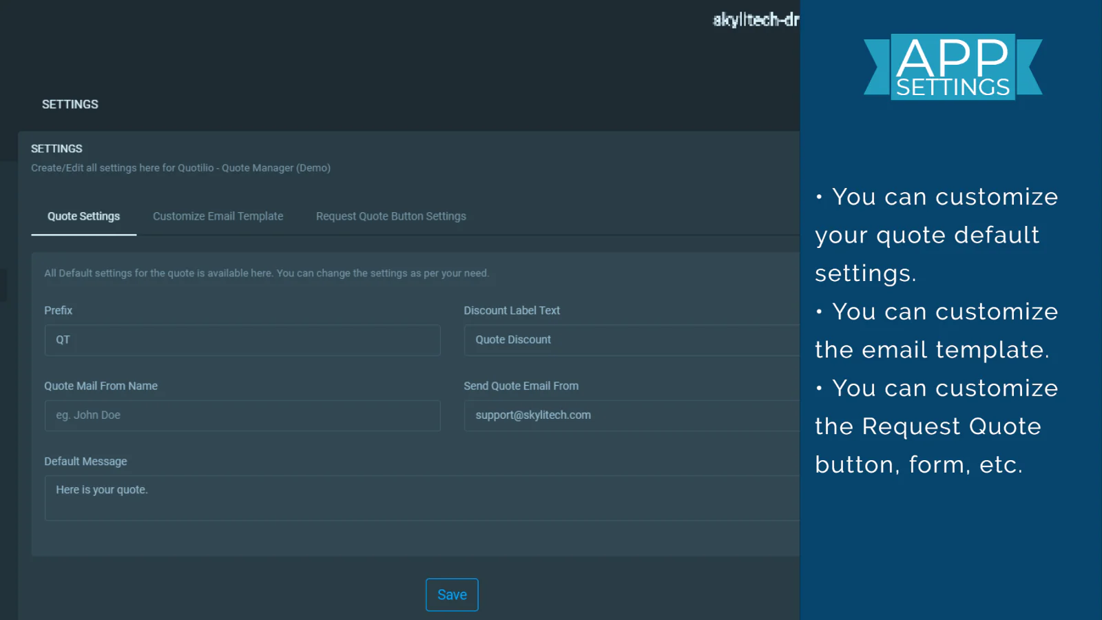 Everything is customizable : No coding knowledge required to customize the quote request form and quote email template. You can easily customize your own from the app.