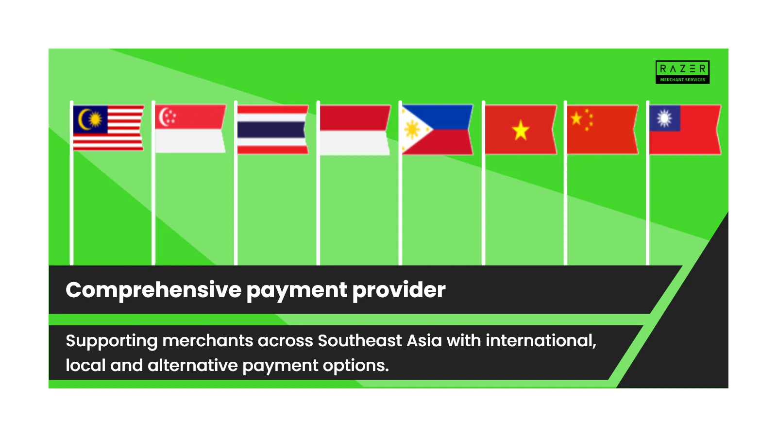 Razer Merchant Services (RMS) is the B2B arm of Razer Fintech, an 020 (offline to online) digital payment network in emerging markets. RMS’ B2B (Business-to-business) solutions encompasses: