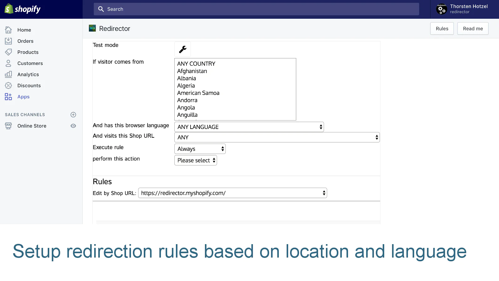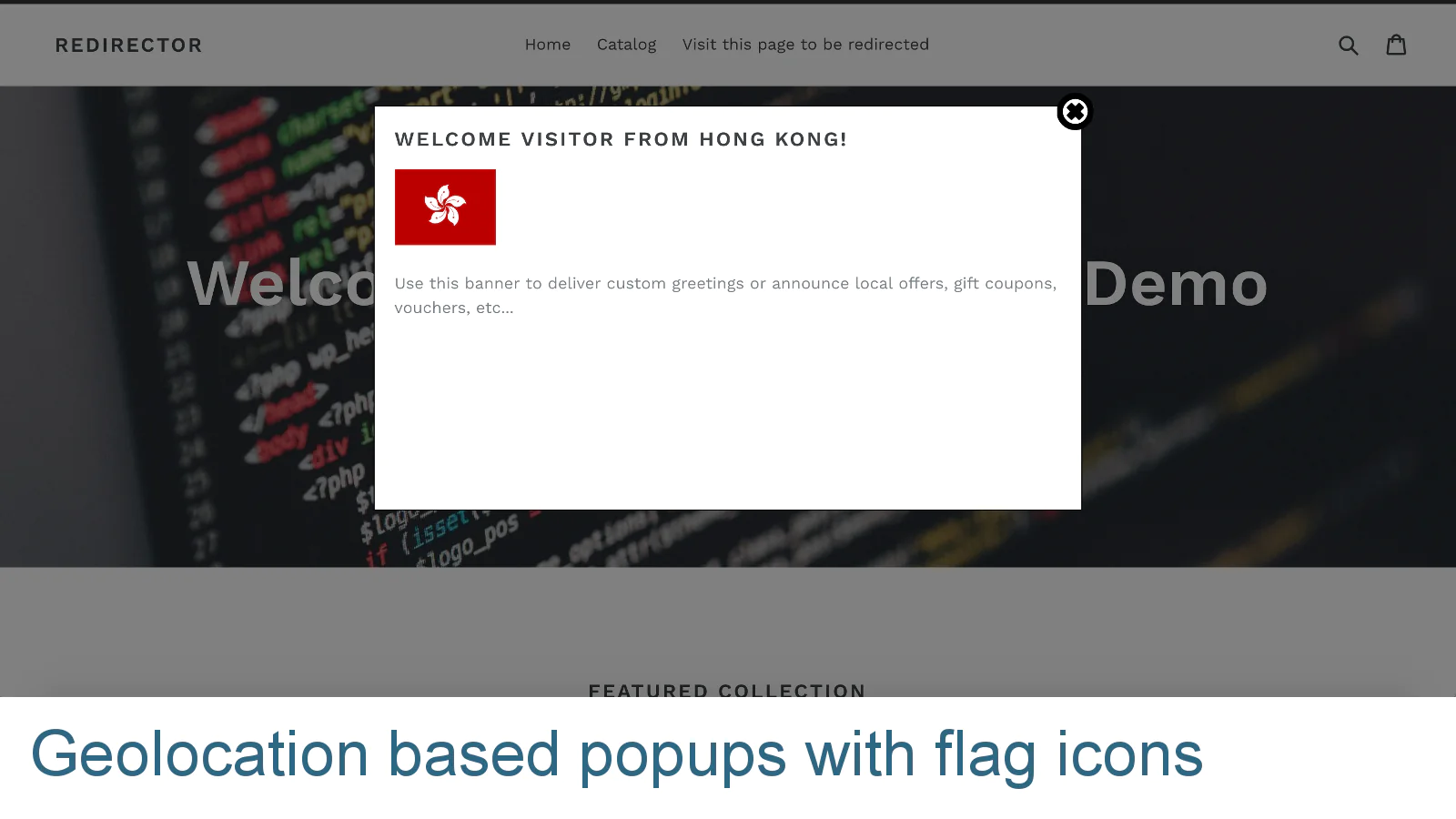 Redirector allows you to create complex rules to either redirect customers or display localized information based on geolocation and/or browser language. Redirector comes with an HTML editor that allows you to create nice looking banners and greet potential customers in their language or with special local offers. You can also redirect your visitors to any page in your shop or to any other external URL.