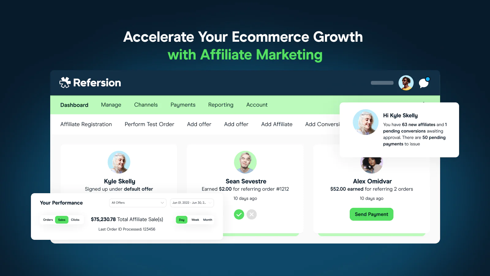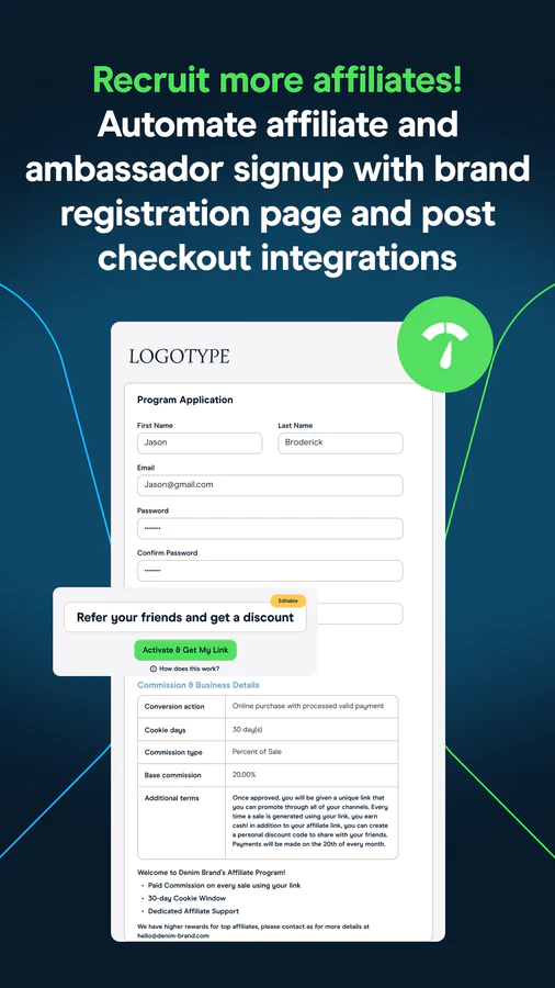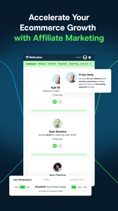 Recruit Unlimited Affiliates : Onboard & manage unlimited affiliates with your store registration page, post checkout popup registration & Refersion affiliate marketplace.