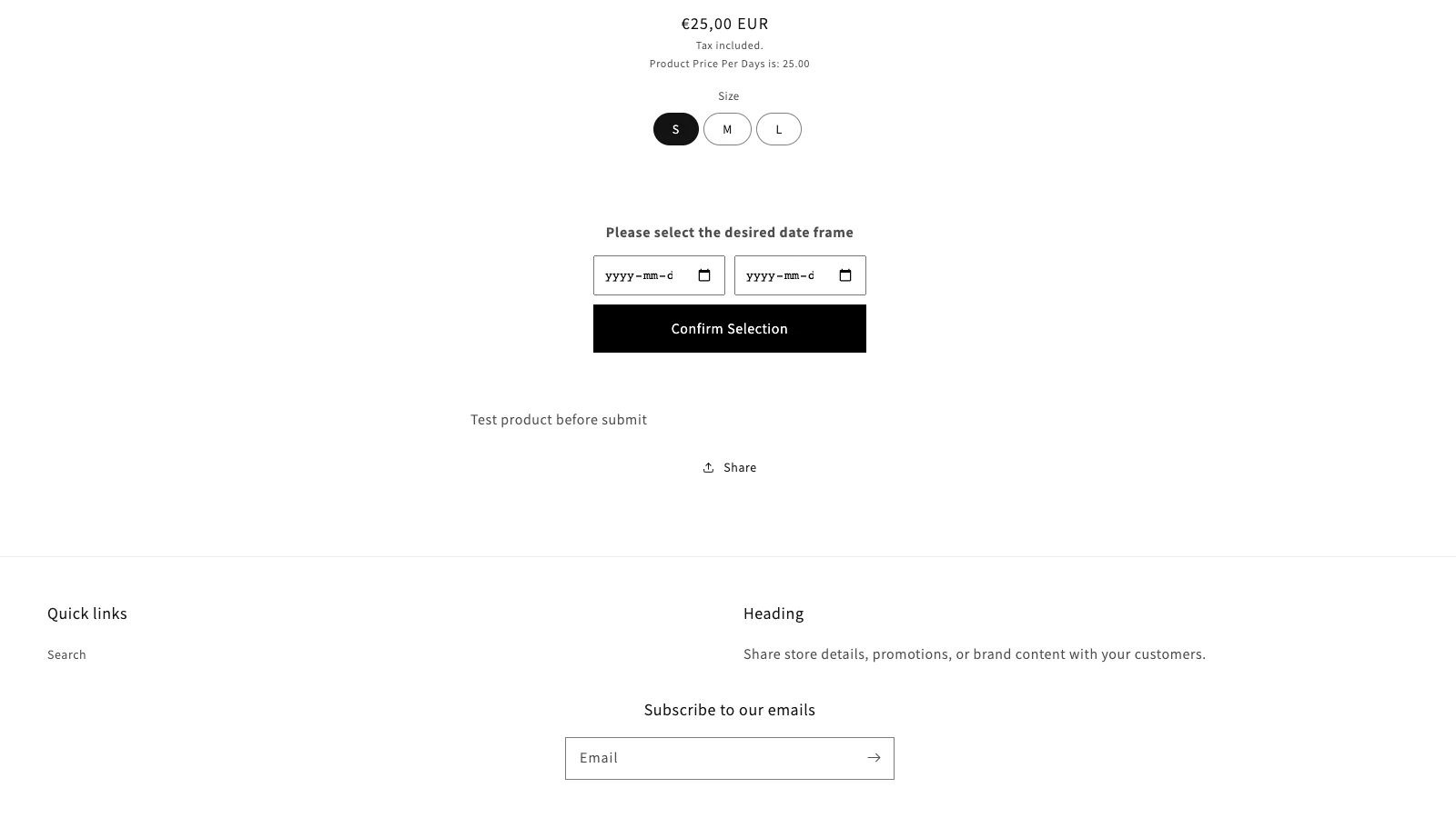 You will be able to rent or sell the same product on the same product card. A new variant as a rental will appear and on that product, your customer will be able to see a calendar in which they will be able to select the date range from your selected minimal and maximal rental period.